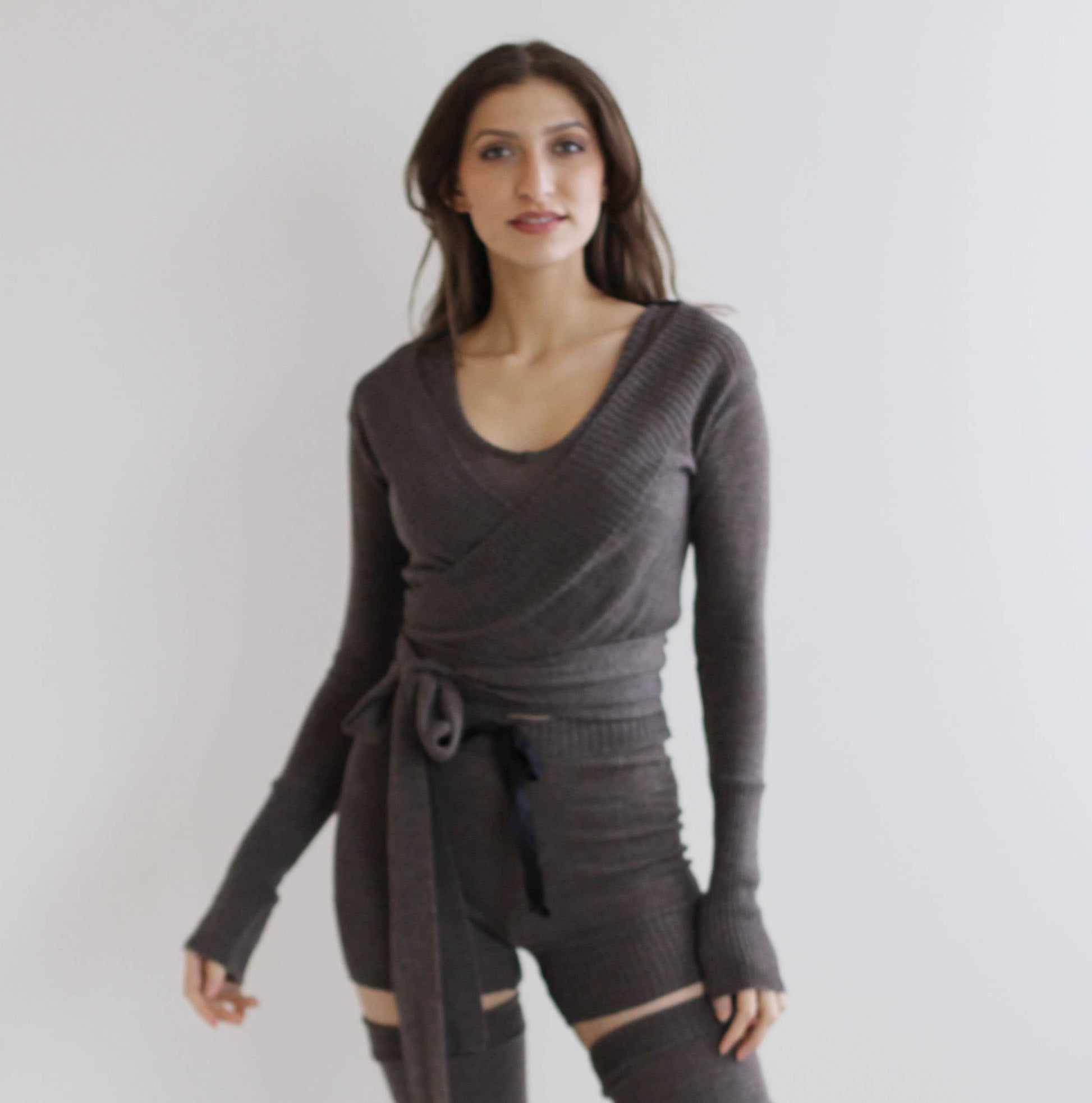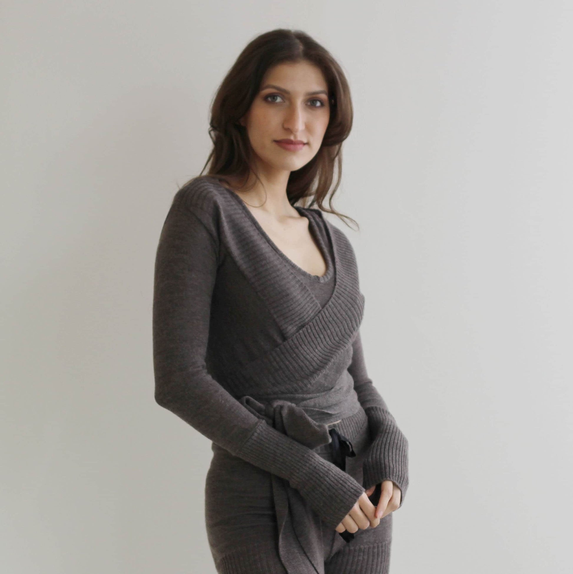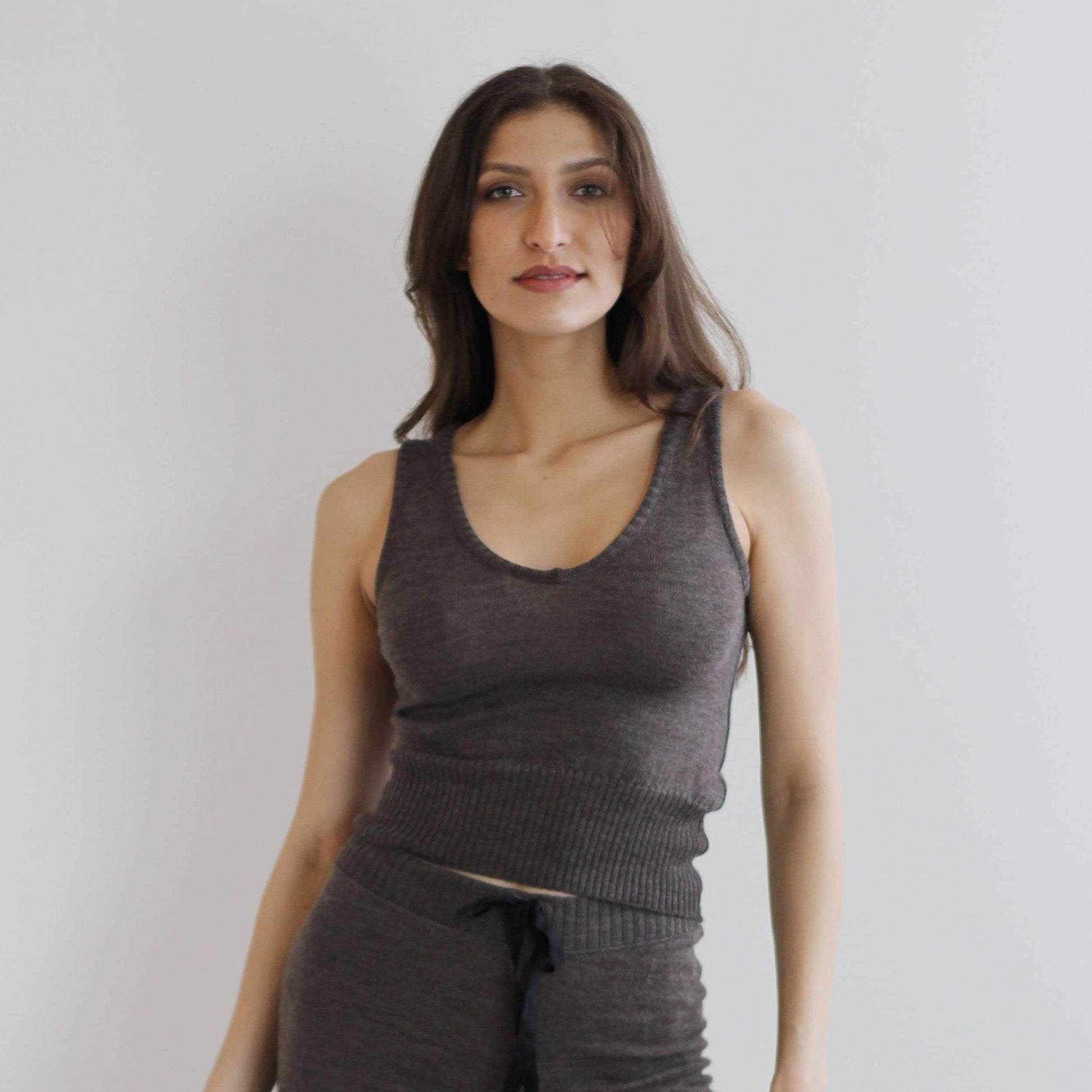 Two Piece Sweater Set including the cropped tank and the wrap style shrug in soft merino wool knit
