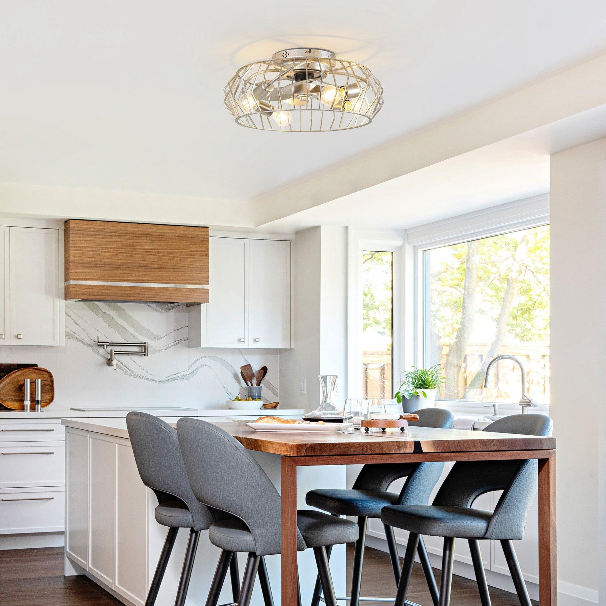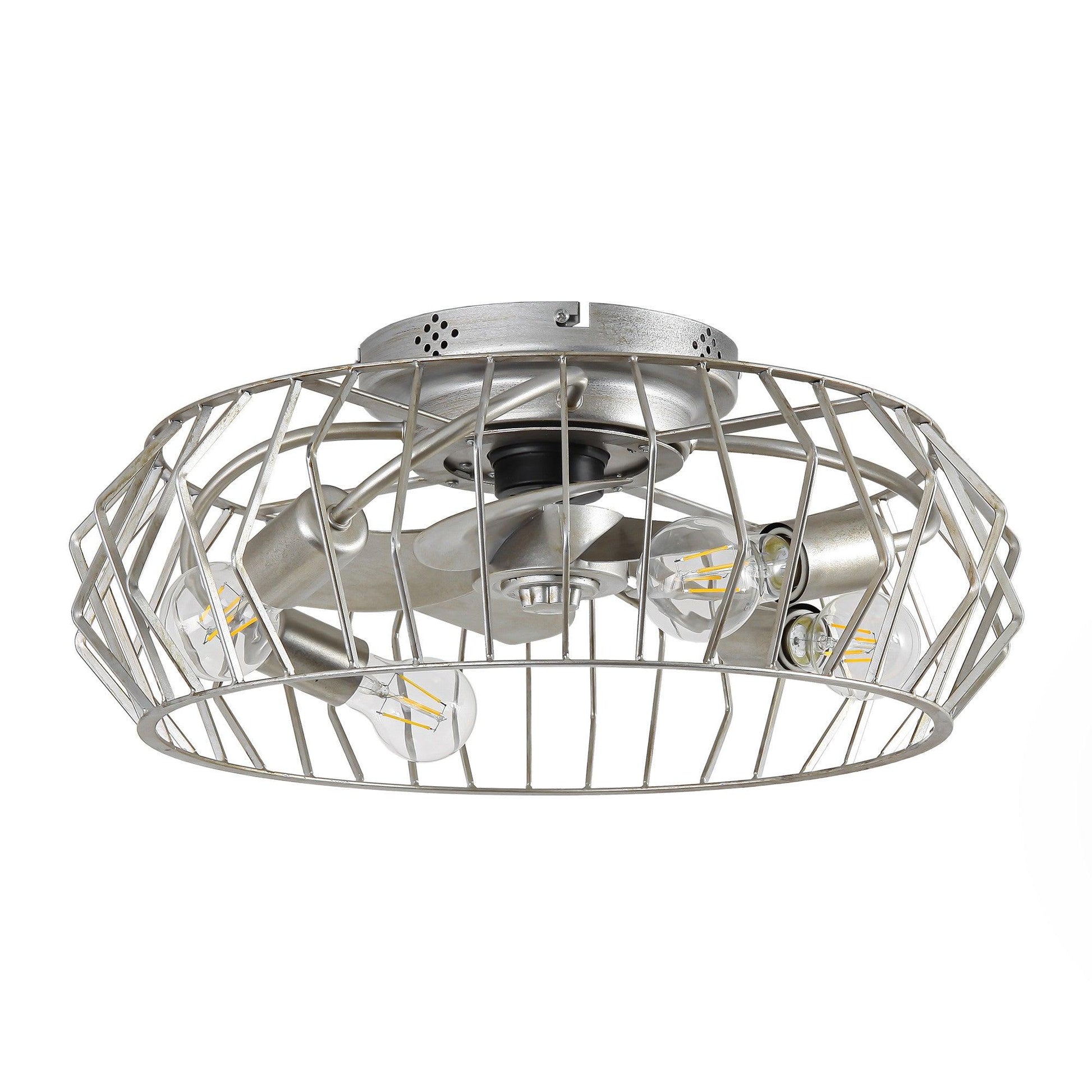 20 Inch Silver Flush Mount Ceiling Fan with Light APP and Remote Control