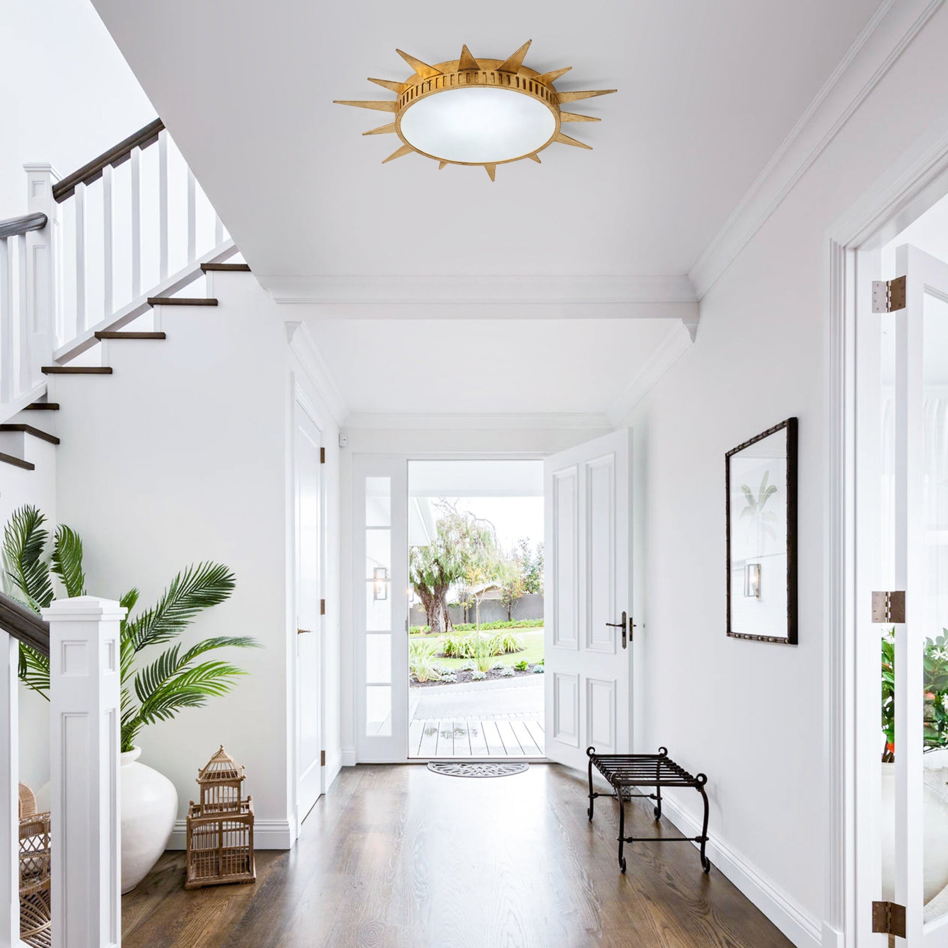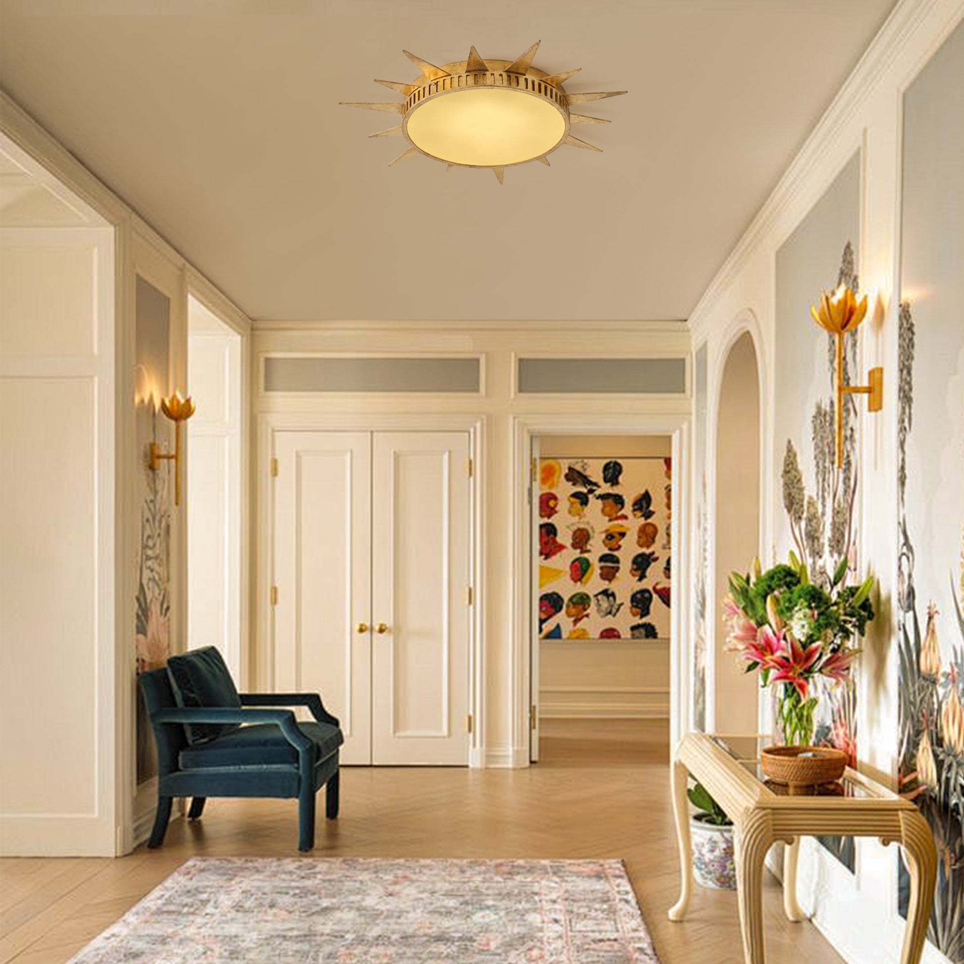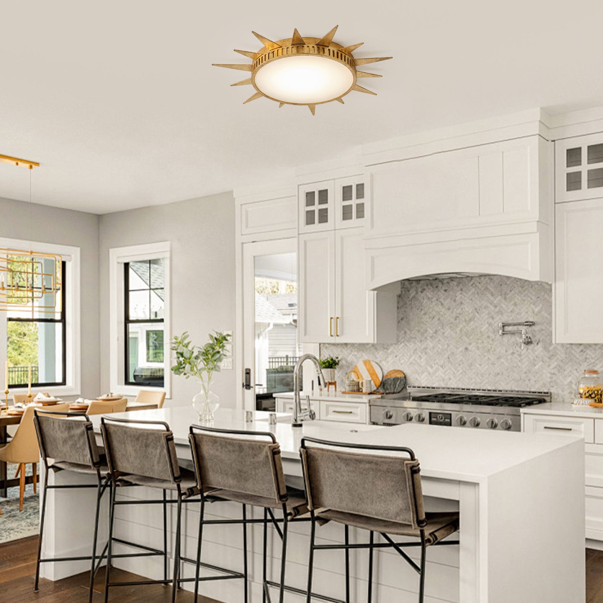 【Modern Golden Sunburst】: Sleek 25-inch flush mount with a striking golden sunburst pattern, made of a Durable iron frame with a clear acrylic light panel.