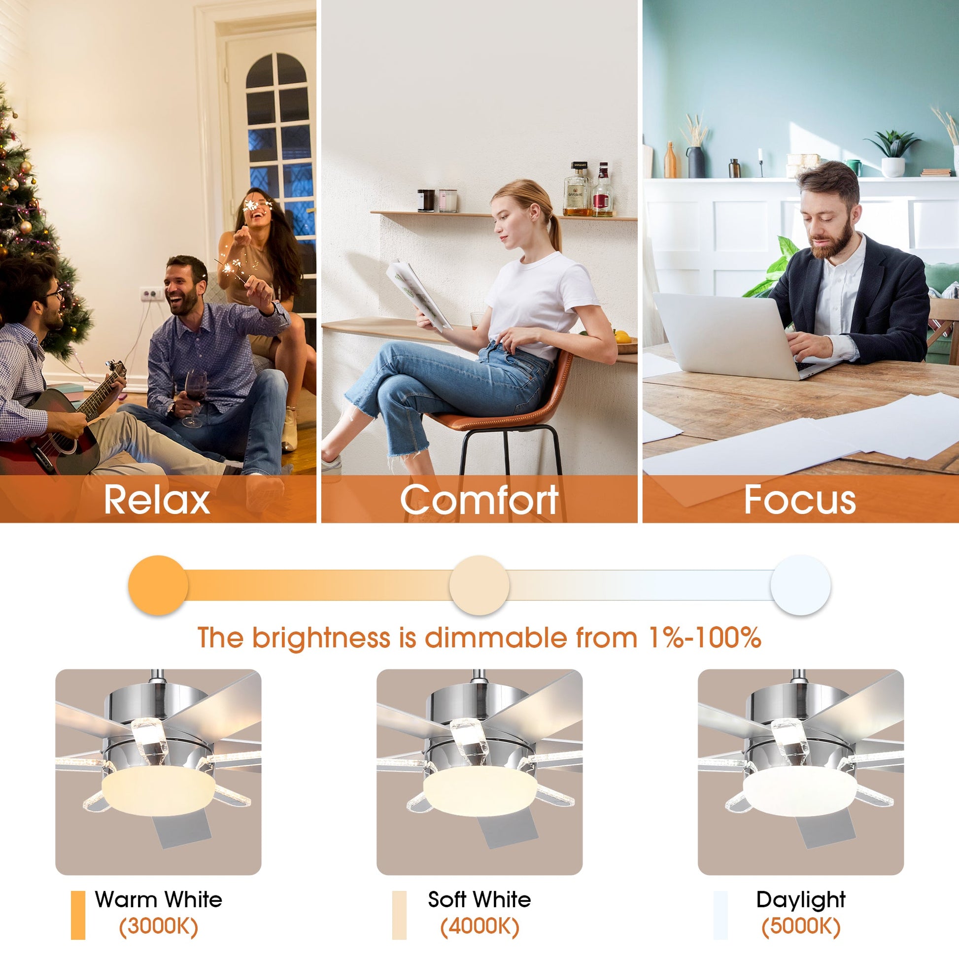 【Complete Remote Control】: Conveniently adjust all 6 fan speeds, reverse function, and both light settings (on/off, dimming, CCT) from anywhere in the room.