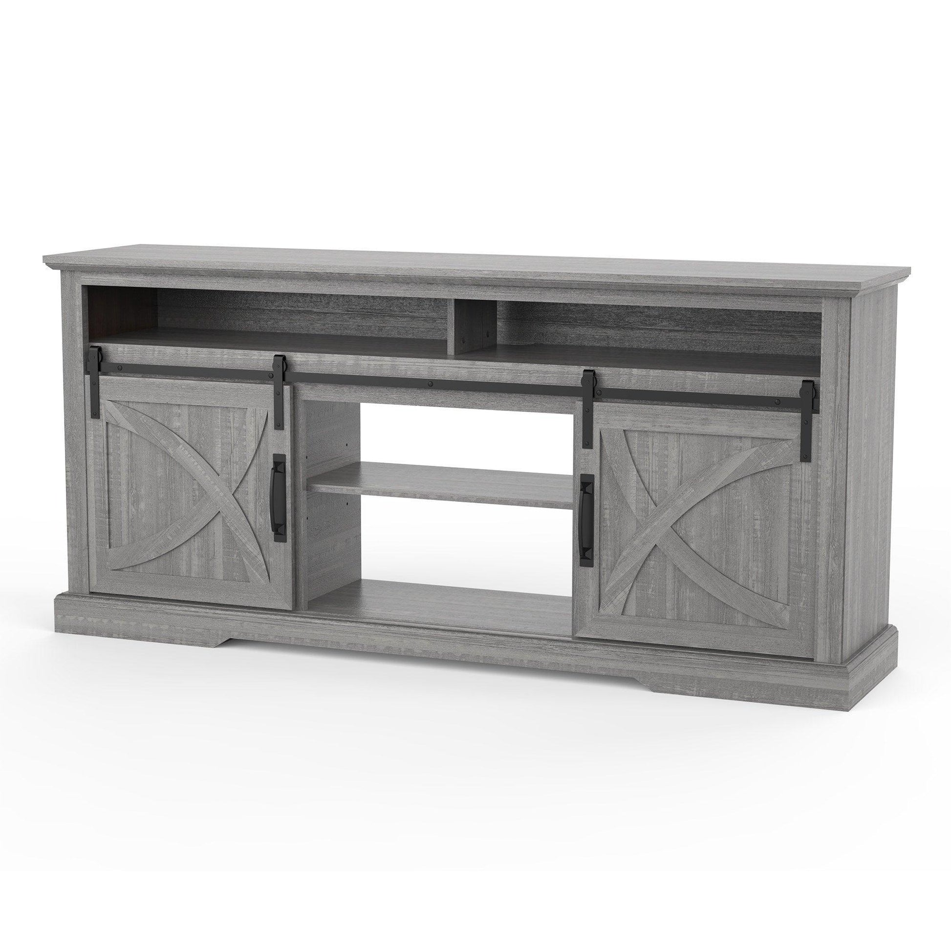 68" Farmhouse TV Stand with Double Sliding Barn Doors for Living Room