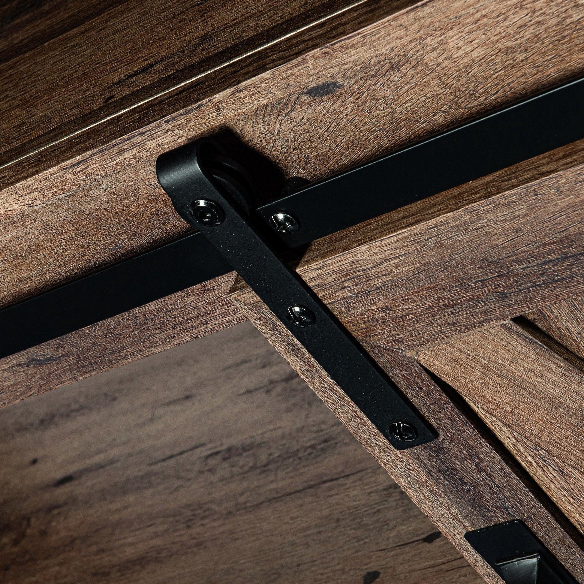 Imbue your living area with the rustic allure of our farmhouse-style TV cabinets. More than just a media console, this fashionable furnishing injects both utility and personality into your home. This multifunctional cabinet not only serves as a TV stand but also doubles as a storage unit, providing a neat solution for organizing DVDs, game boxes, and decorative items. The unique sliding barn doors, guided by top-notch steel bars, allow effortless access to side cabinets or central shelves, ensuring all movements are smooth and silent. Crafted from certified high-grade wood, its robust construction guarantees both durability and stability. The cabinet arrives with lucid assembly instructions, simplifying the setup process and making it a perfect enhancement to your home decor.