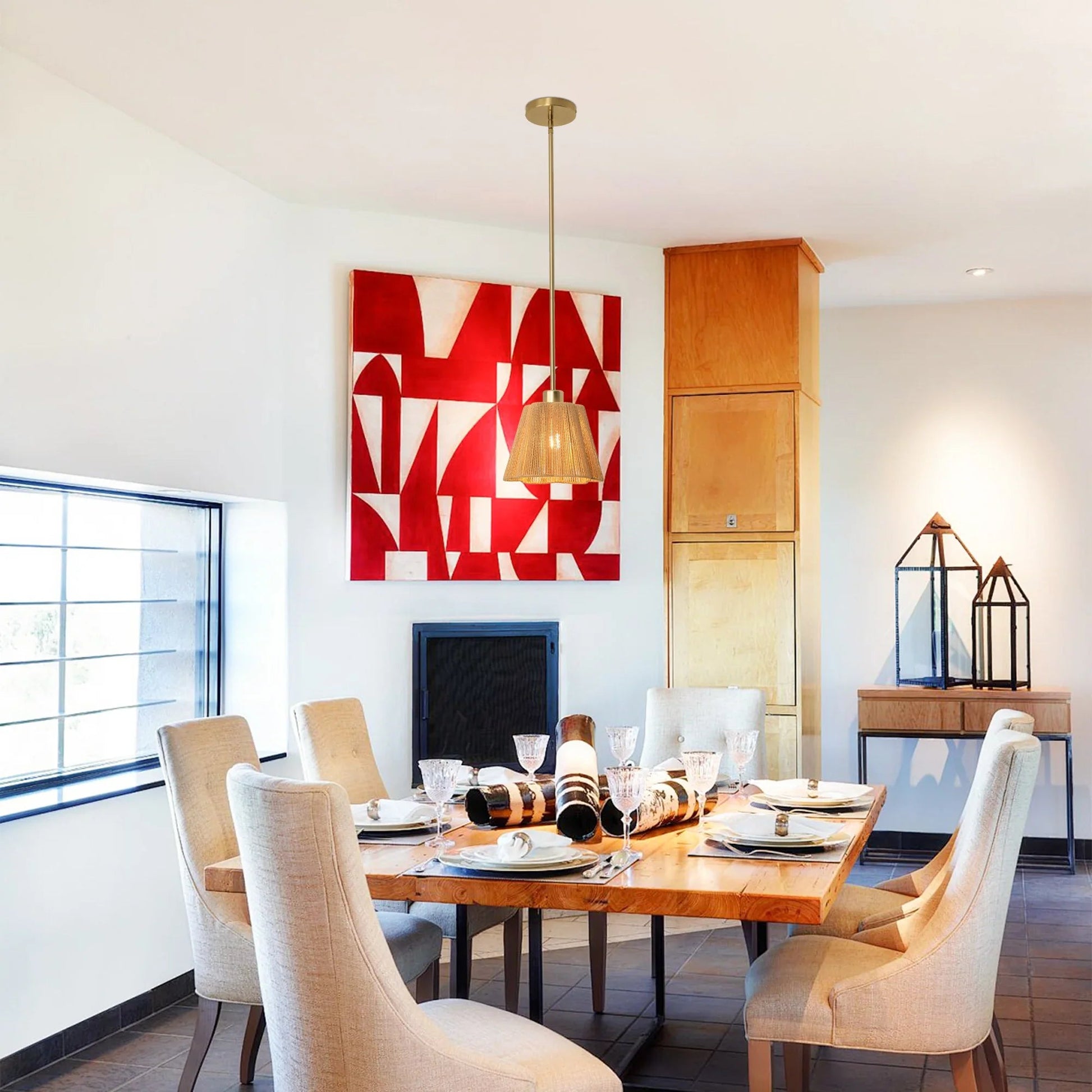 【Farmhouse Style】: Features a classic farmhouse design with a warm golden iron finish. Combines a durable iron frame with a natural woven hemp paper rope shade for rustic texture.