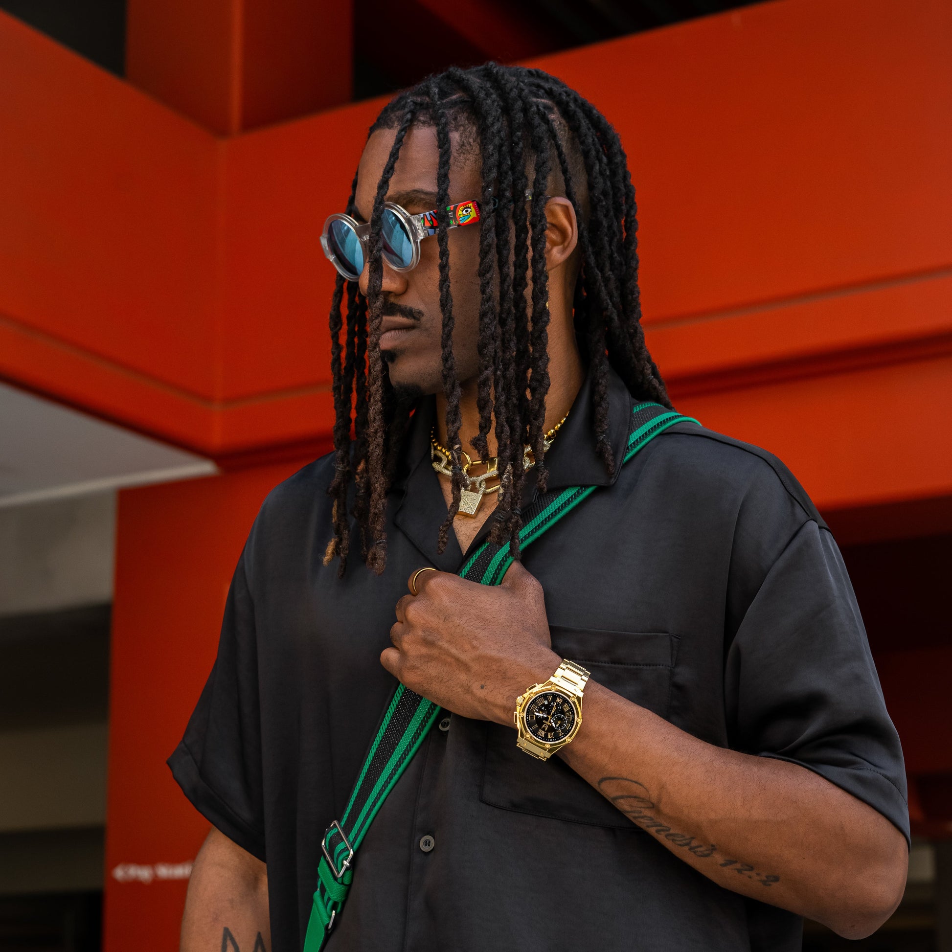AM1001SS - AMBASSADOR POLISHED 18K GOLD / BLACK / SS BAND