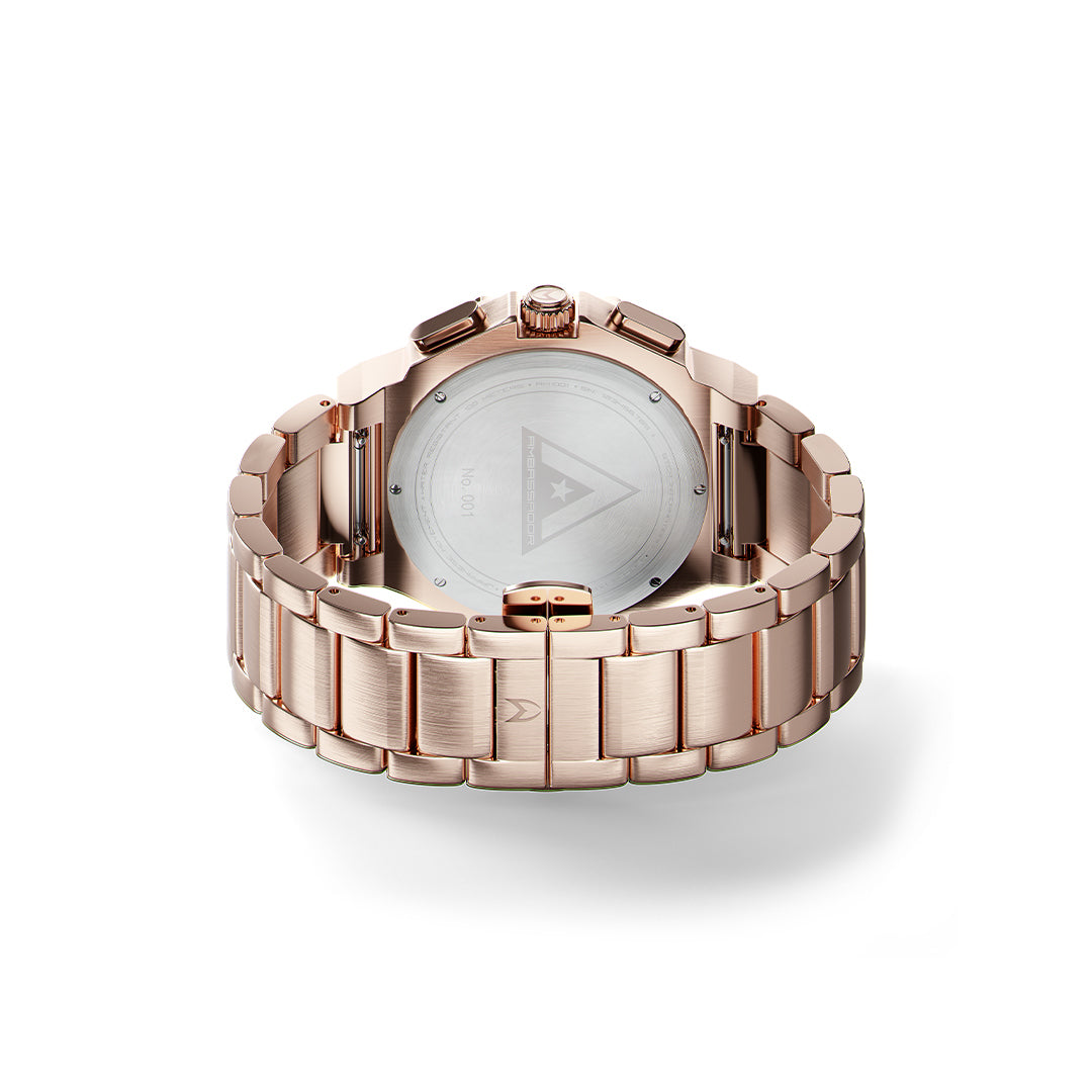Warranty: 2 years limited warrantyDetails matter in well-made watches, which is why MSTR brings to you its Ocean Blue Ambassador—a luxury designed watch with several functions and a fashion sense. Crafted with 316 silver stainless steel bezel, crown, lug, and hexagon bolts, the Ocean Blue Ambassador exudes understated charm. The blue sun-ray dial and three subdials, along with the rose gold Roman numeral-stick indices, lend the timepiece a captivating modern air. Pair the Ocean Blue Ambassador with the timeless stainless steel three-link band for formal occasions or black rubber strap for casual get-togethers. Either way, you’ll make a statement wherever you go!
