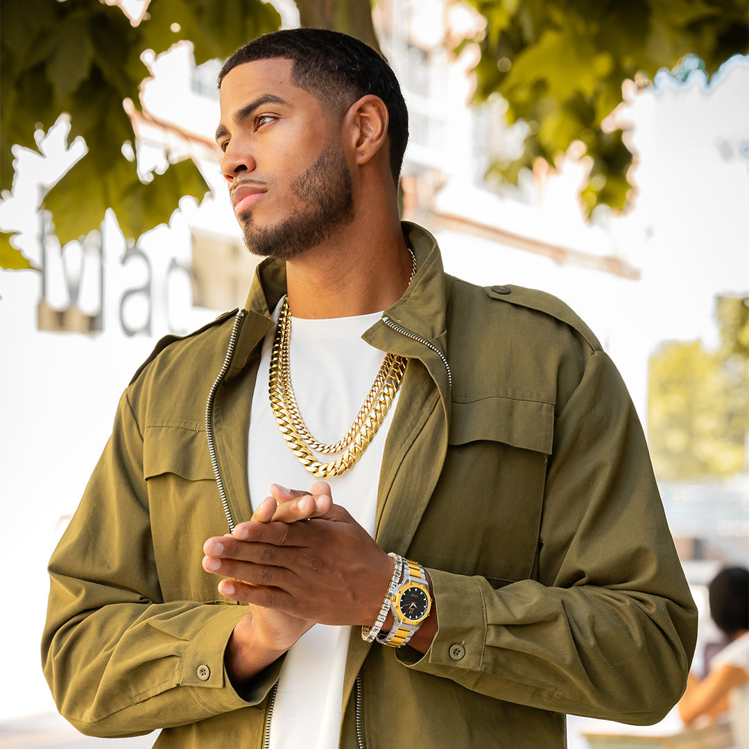 Warranty: 2 years limited warrantyIntroducing the Silver Halo 41mm Ambassador. Designed in a two-tone silver and gold combination. Featuring our new waffle face dial powered Swiss quartz movement. This multi-piece case and bezel come in a brushed silver finish with light yellow gold center links and bezel. This watch features a butterfly deployment clasp with an interchangeable steel strap. There are only 100 pieces made of this limited edition collectible timepiece, all individually numbered on the back.