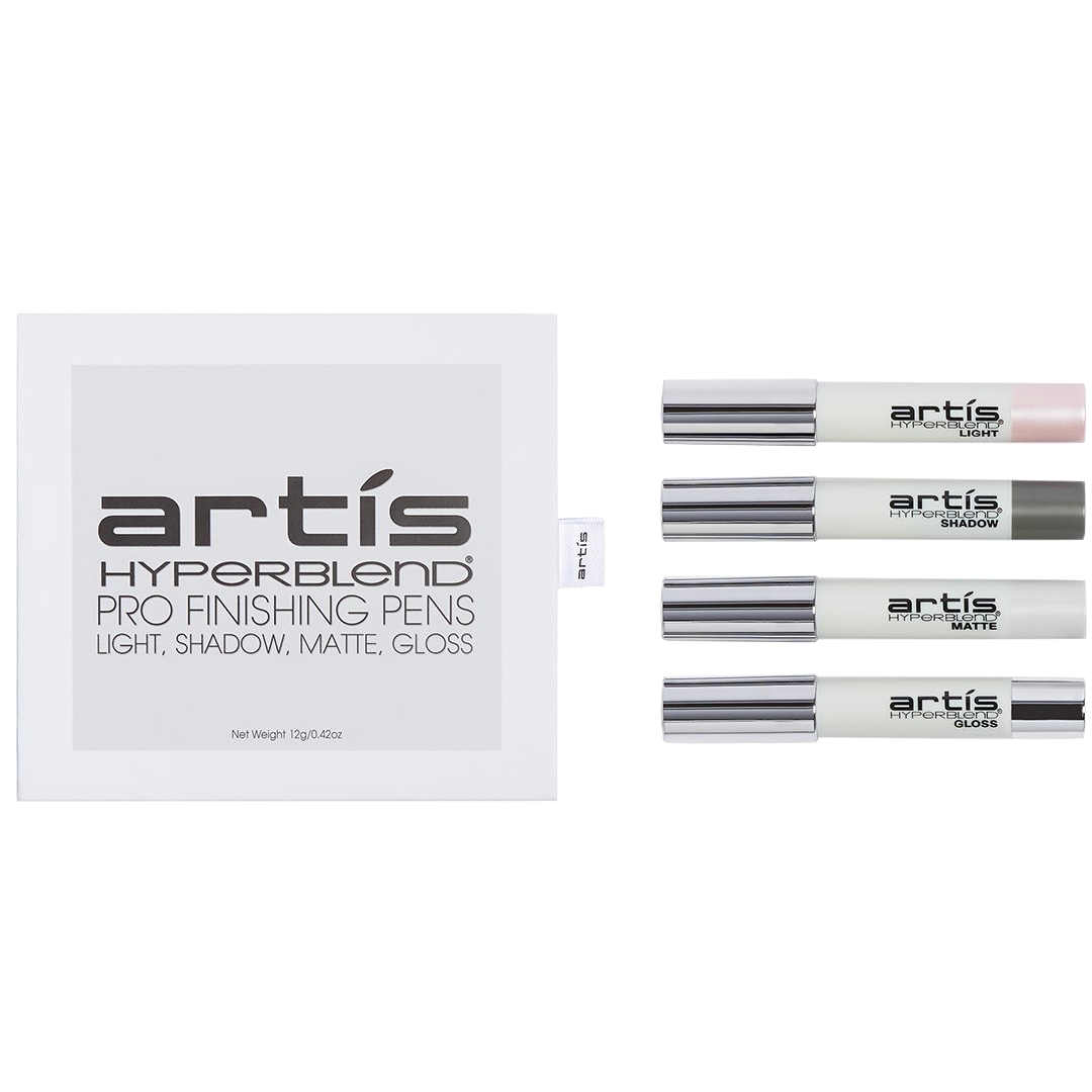 Introducing Hyperblend Pro Finishing Pens: a set of four complementary finishing tools designed to uniquely interact with light and deliver an assortment of effects on the skin (mattification, gloss, glow, and contouring) without the use of colored pigments.