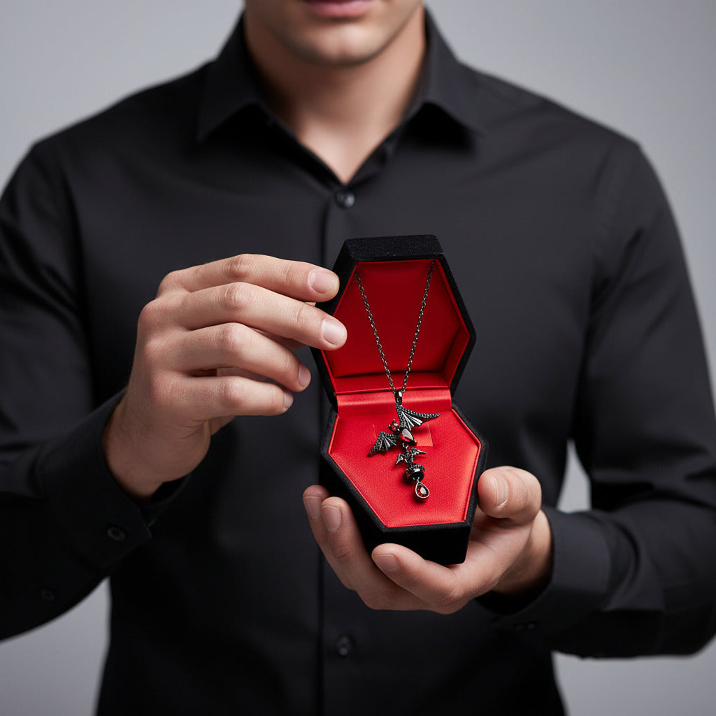 Believe the hype! The Bat Shaped Garnet Vintage Gothic Punk Necklace from Black Diamond New York is the ultimate must-have for those looking to make a statement. Combining unique, durable metal with natural garnet and black round side stones, it offers a punk flair and a gothic vibe. Ditch your ordinary jewelry for this unique and stylish piece — it'll be sure to turn heads!