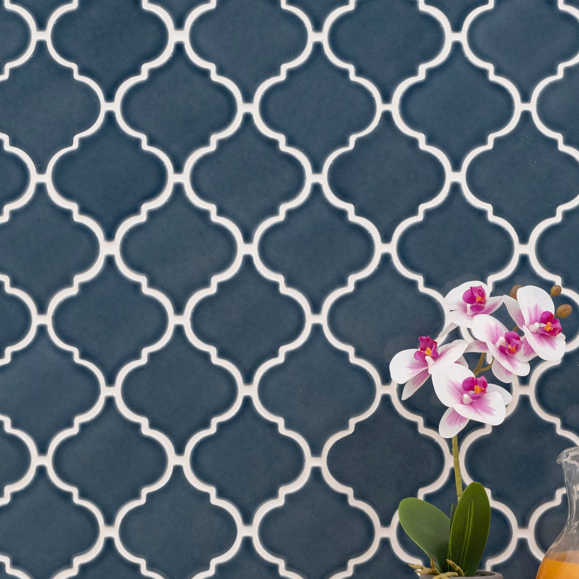 A stunning combination of color, finish, and shape, Bay Blue Arabesque Tile features a sophisticated muted royal blue palette that allows the unique pattern to be the star. Whether it’s used as a shower surround, or as backsplash tile in kitchen, bathroom, or other interior space, Bay Blue Arabesque adds an elegant and handcrafted element to your home.