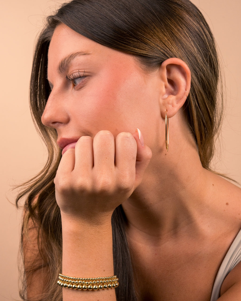 This set is all about easy, everyday style. The beaded bracelet trio (3mm, 4mm, and 6mm) is perfect for stacking or wearing alone, with a stretch fit that’s comfortable no matter the occasion. It pairs perfectly with the threader hoop earrings, designed with a sleek slide-through shape that’s lightweight, stylish, and hypoallergenic. Minimalistic pieces that go with everything.
