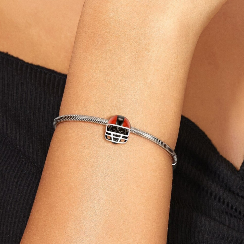 Wear your punk-style with pride thanks to this black skull and helmet gothic DIY charm! Crafted with 925 Sterling Silver, this charm serves up all the daring vibes with its black, glossy skull and punk-helmet design. At only 3.6g, it packs a punch with its sheer punk power. Turn heads and stand out from the rest with this unique, gothic-inspired design - ready for any adventure you have planned!