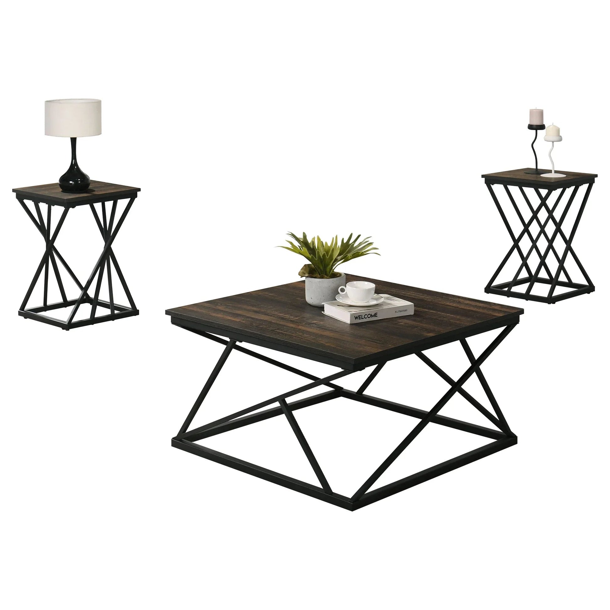 Borup Rustic 31.5" 3-Piece Coffee Table Set with Decorative Wrought Metal Side