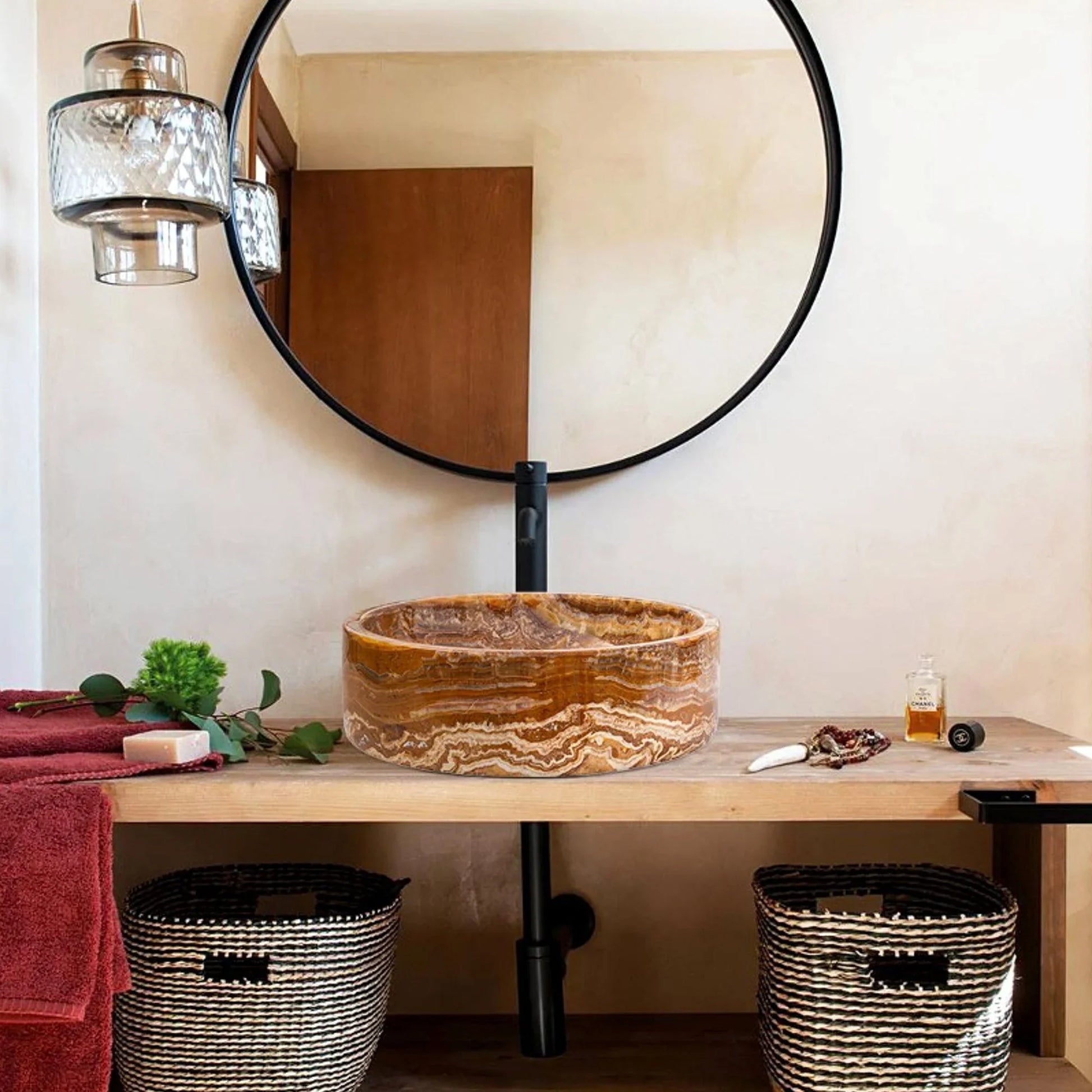 Brown Onyx Translucent Natural Stone Above Vanity Bathroom Sink Polished (D)16" (H)5"- Translucent Vessel Sink Handcrafted in Turkey. Hand-crafted to be used in Bathrooms Above Counter or Under-mount.