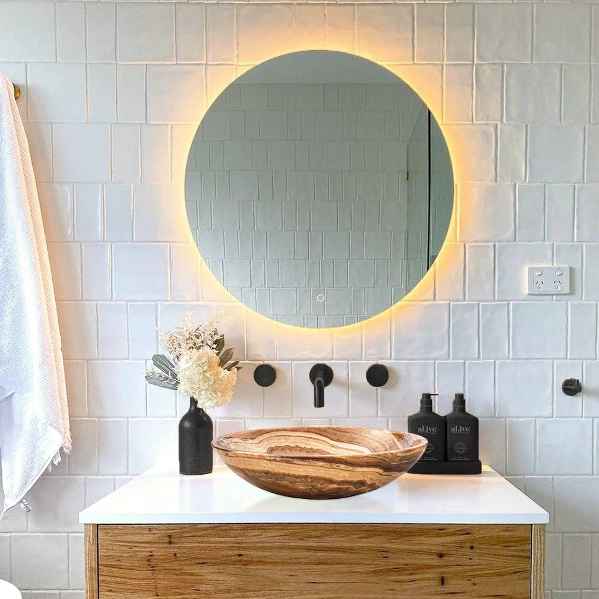 - These bathroom vessel sinks feature an elegant and glossy polished interior. The beauty of the marble plus the gentle and cozy lines make this basin suitable for any style of bathroom or kitchen.