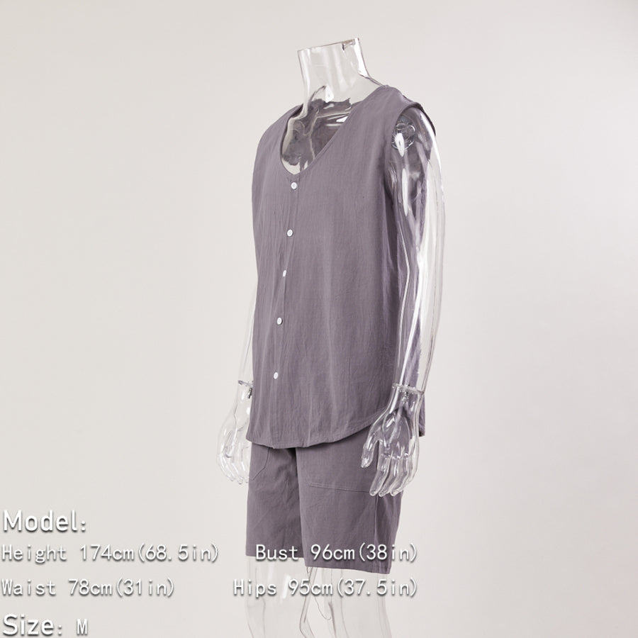 Casual men's non-stretch vest & shorts set (no white t-shirt)