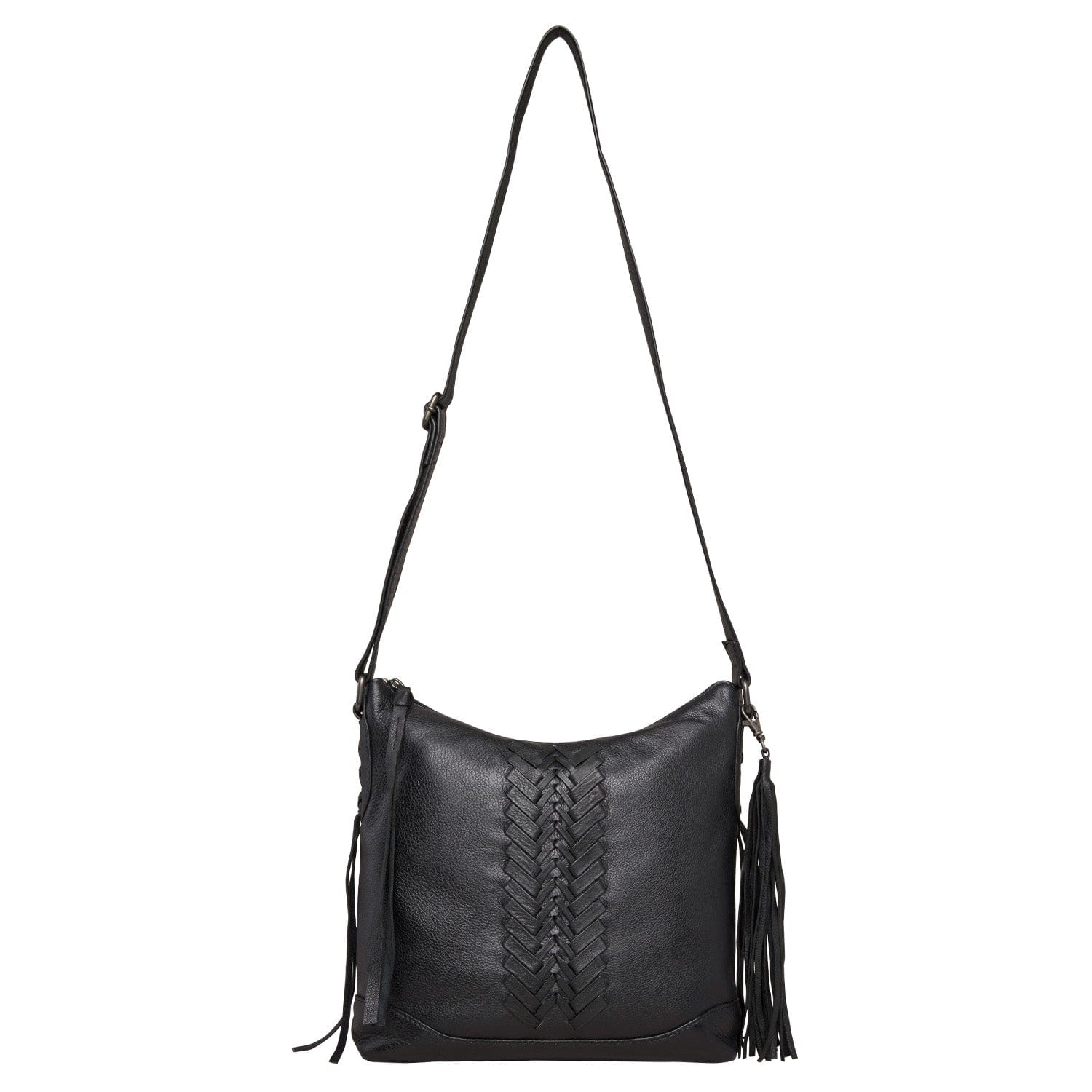 The Blake Scooped Leather Crossbody by Lady Conceal is crafted from premium full grain leather, each piece showcasing its own natural variations in grain and shading. Intricate leather crisscross stitching adorns the front and sides, complemented by decorative long tassels for added charm. Inside, a full-length zippered pocket divides the interior into two compartments. The front is crafted with two deep open slip pockets, the back has a zippered pocket, a large open pocket for your cell phone and a leather key strap. A zippered pocket on the back adds more room for your essentials. The crossbody strap measures 29” - 52” long with a 13” - 26” drop.
