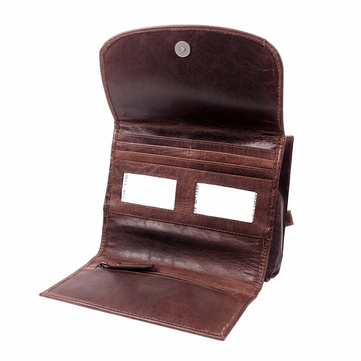 - Easy access RFID-protected organizer with credit card slots, 2 ID holders, 2 slip pockets, and a zippered coin pocket