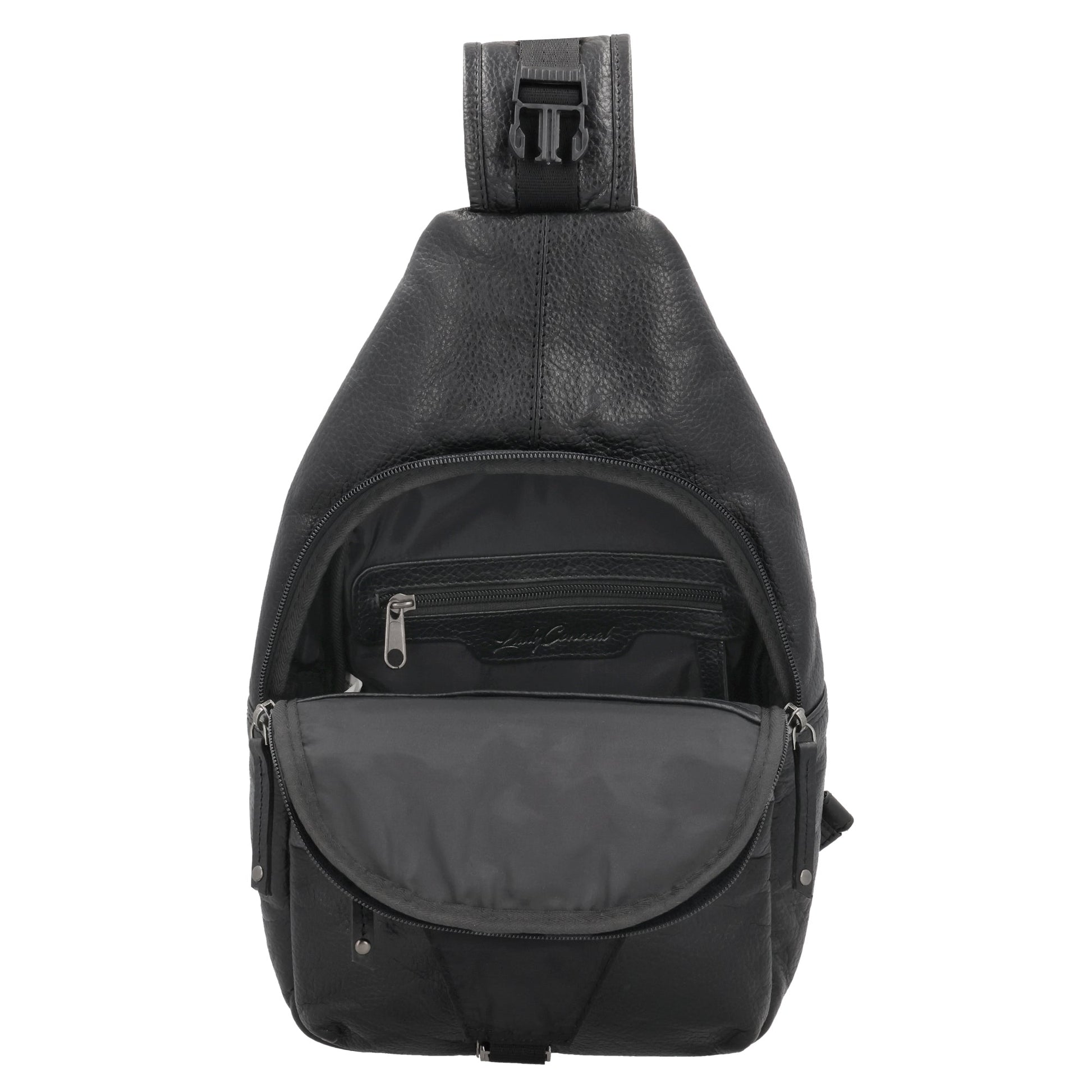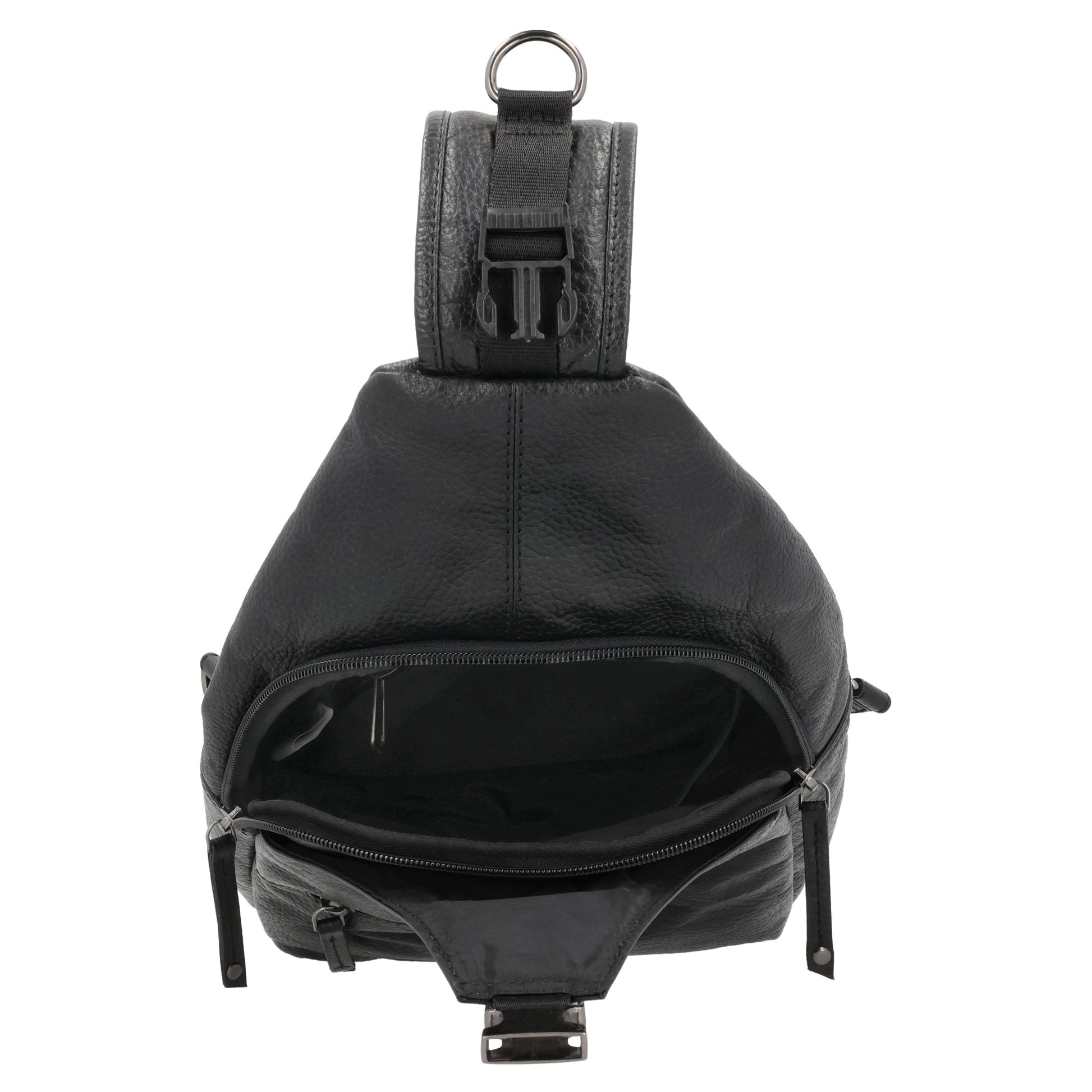The Grayson large leather sling backpack by Lady Conceal is crafted with genuine firm buffalo leather. This unisex sling backpack is versatile, featuring rings on the lower bottom for ambidextrous carry. It can also be worn in the front for maximum firearm security. The spacious main interior has a large slip pocket, one zippered pocket, and a leather key strap. Unlatch the clasp for another full-length front pocket with a zippered privacy pocket as well. A slanted zipper pocket on the front adds additional storage. The adjustable sling strap measures 33"- 45" L (drop 20.5" - 28") by 1"W Strap, 2.75" W Padded Strap.