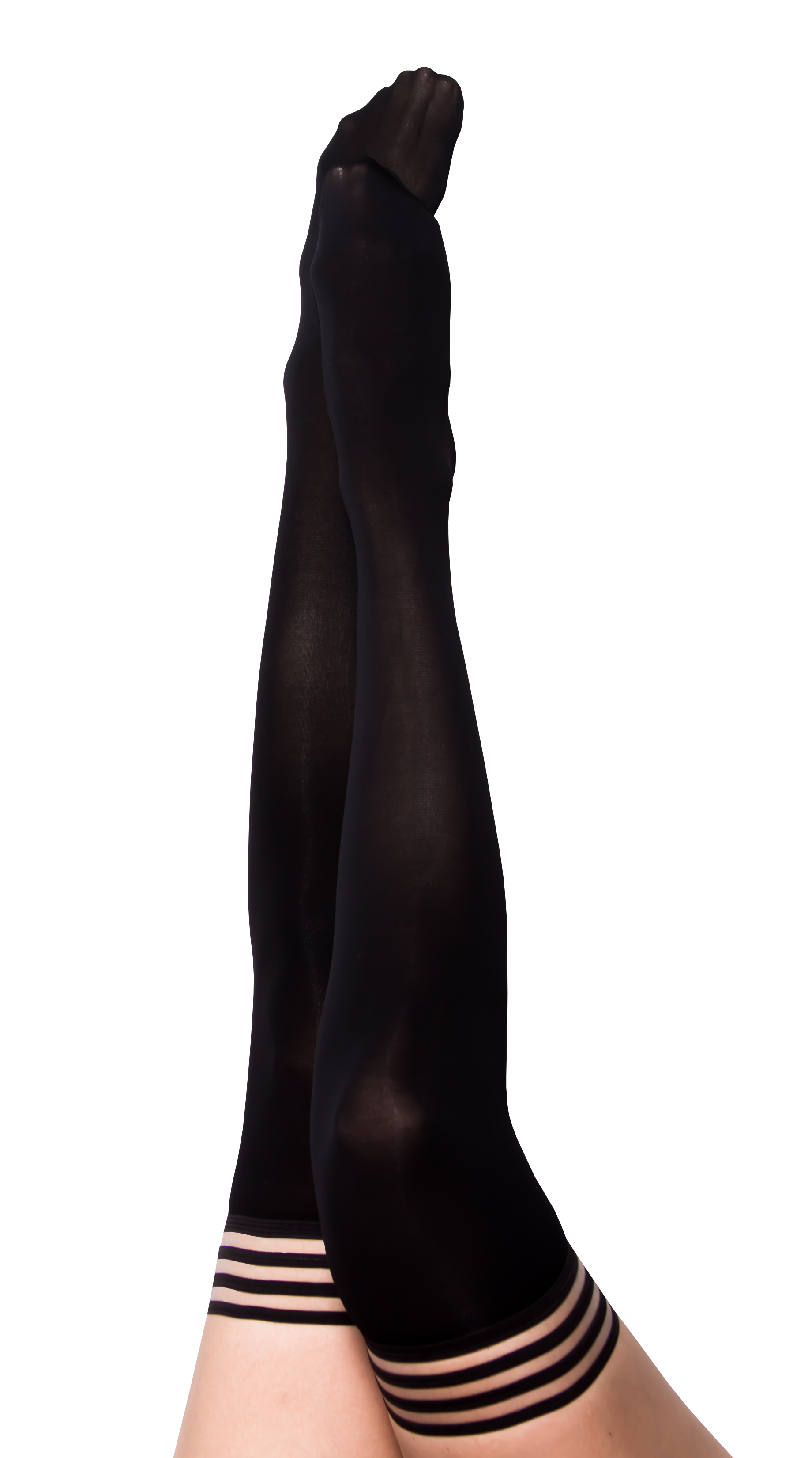 Kix'ies black opaque thigh-high tights are a day to night wardrobe essential, and a best-seller! This thicker thigh-high material helps keep your legs cozy, especially in the cooler seasons! Kix'ies thigh-highs are designed for all-day wear, with a no-slip-grip. We offer Petite to Plus Size Stockings and are the #1 thigh-highs that actually stay up!