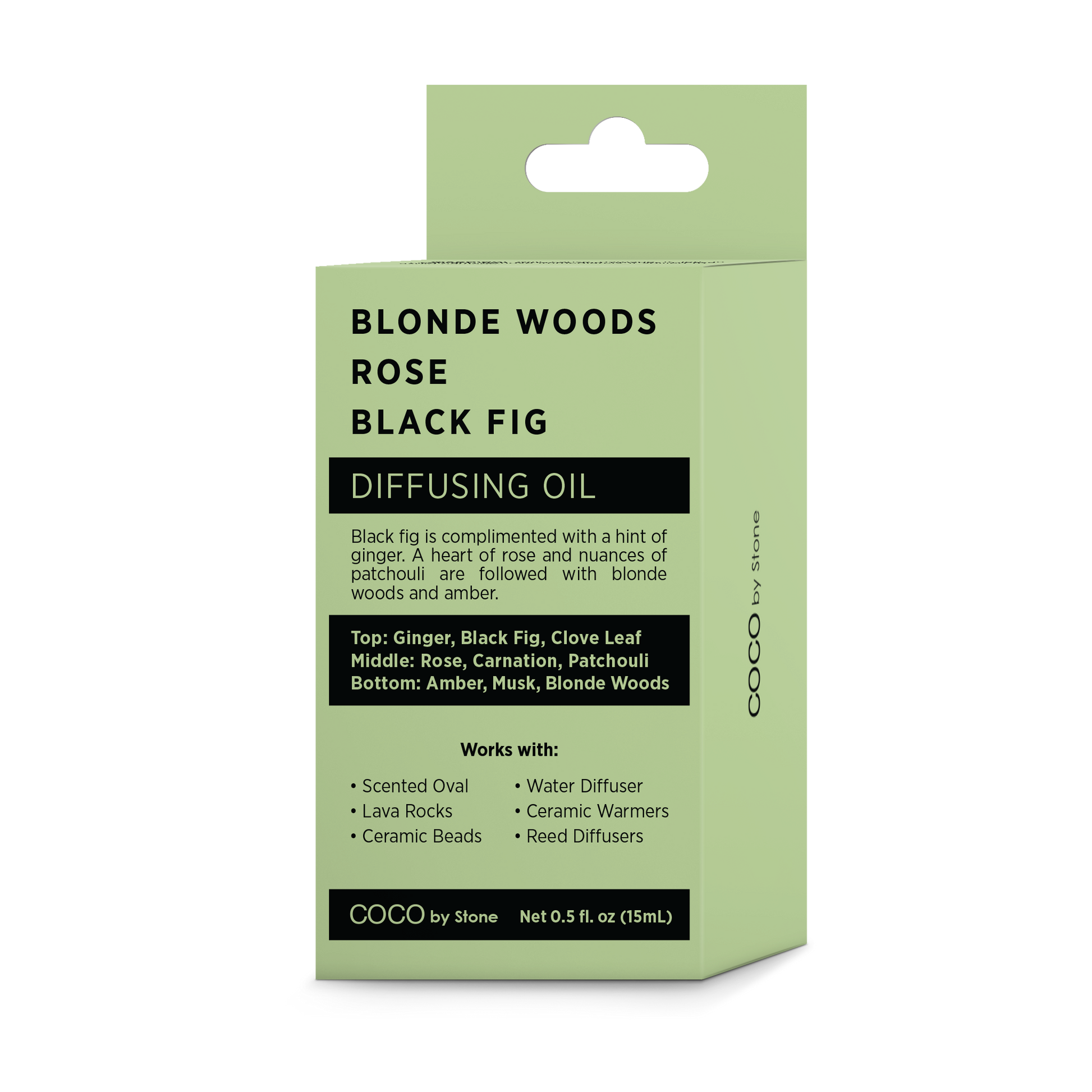 BLACK FIG IS COMPLIMENTED WITH A HINT OF GINGER. A HEART OF ROSE AND NUANCES OF PATCHOULI ARE FOLLOWED WITH BLONDE WOODS AND AMBER.