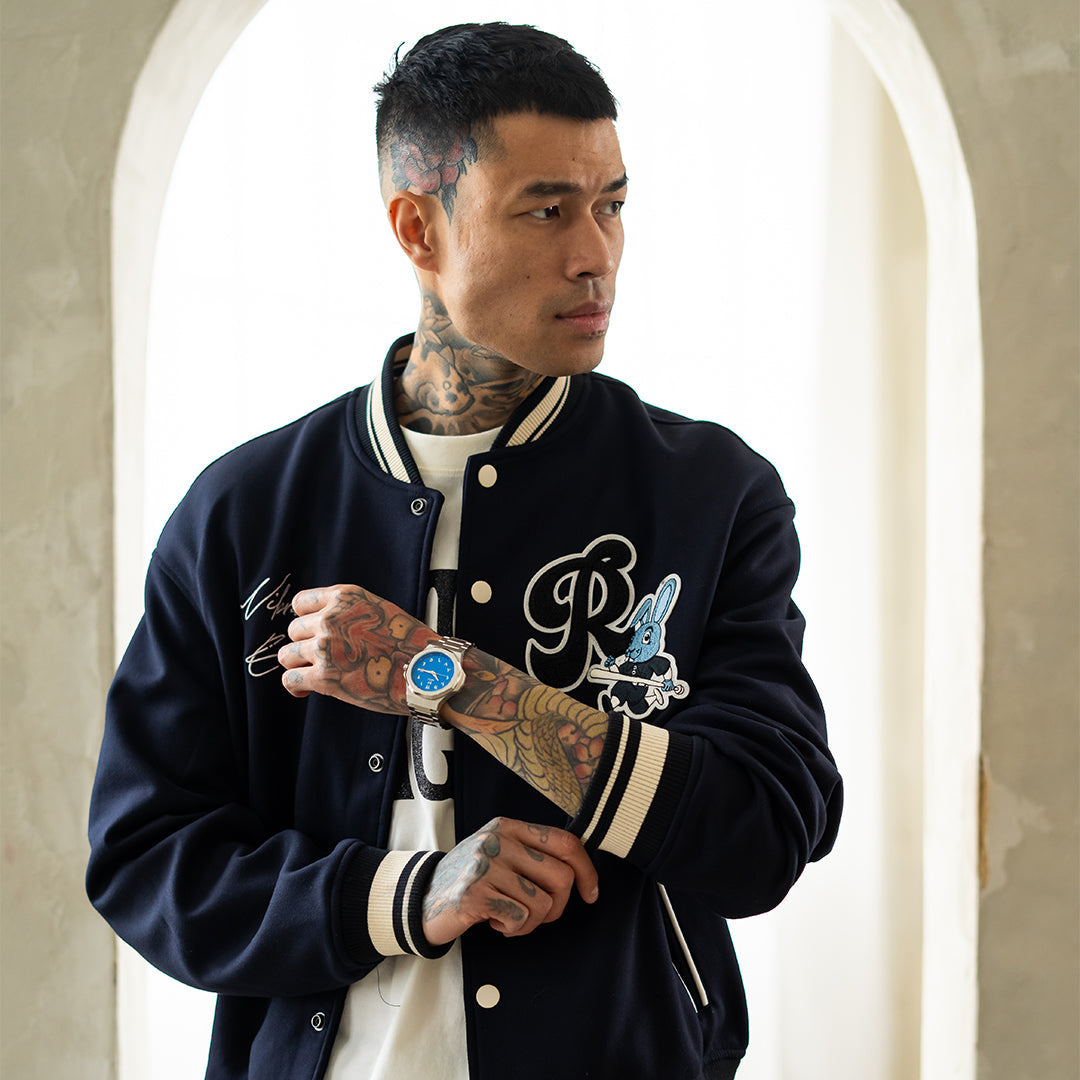 Warranty: 2 years limited warrantyThe Blue Steel Day Trip is a distinctly ocean-themed time piece in the MSTR collection. Inspired by one of Gerald Genta's most famous designs. The new sleek case is designed in a brushed silver NASA-Grade 316 stainless steel with a two-toned finish on the bezel in brushed and polished. The face of the watch features a blue ridged design, topped by chrome-outlined luminescent Arabic hour markers and hands. The new 3-link steel band features the new look along with the coveted butterfly deployment clasp and easy-to-remove screw-pin links. Each Blue Steel Day Trip is individually numbered on the case back, and limited in quantity to only 100 pcs!