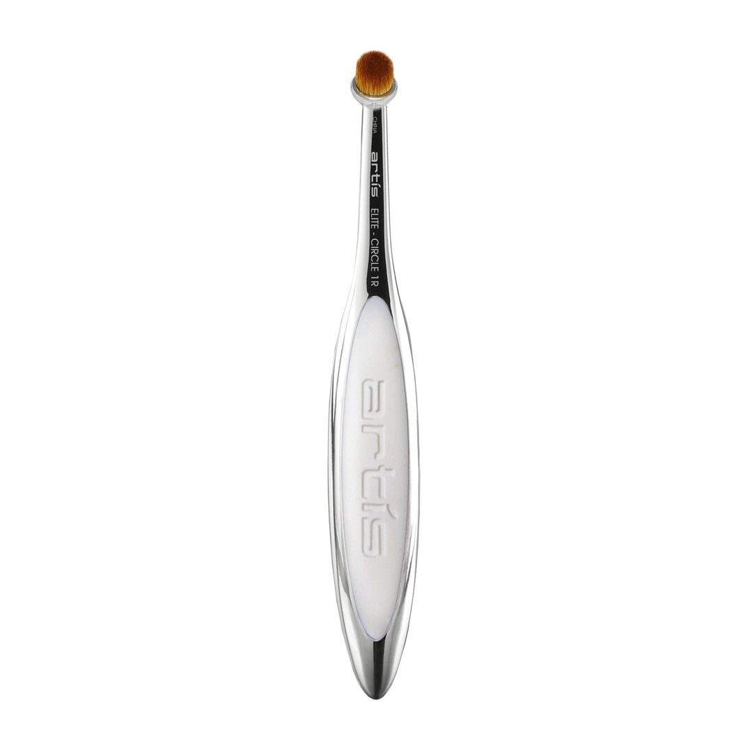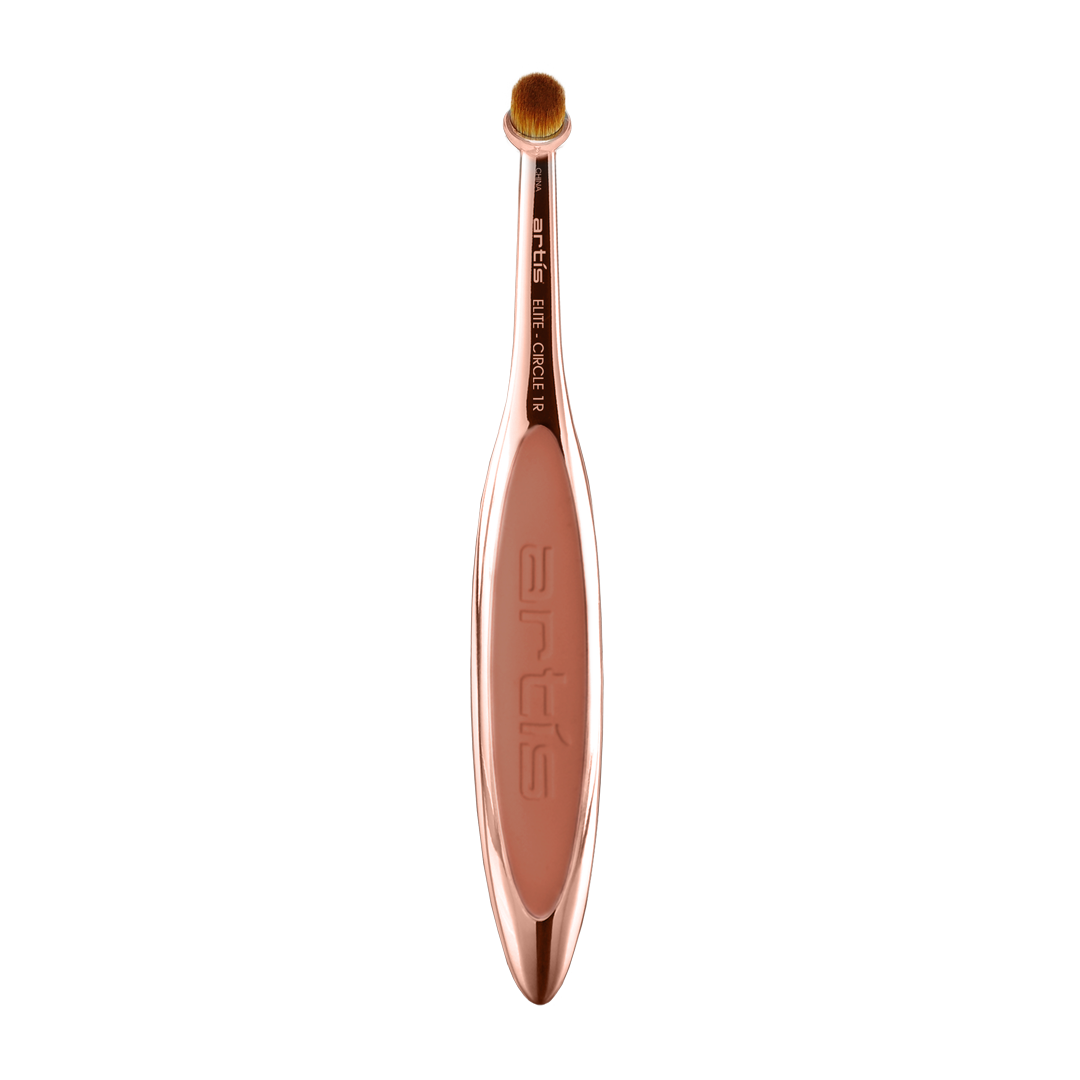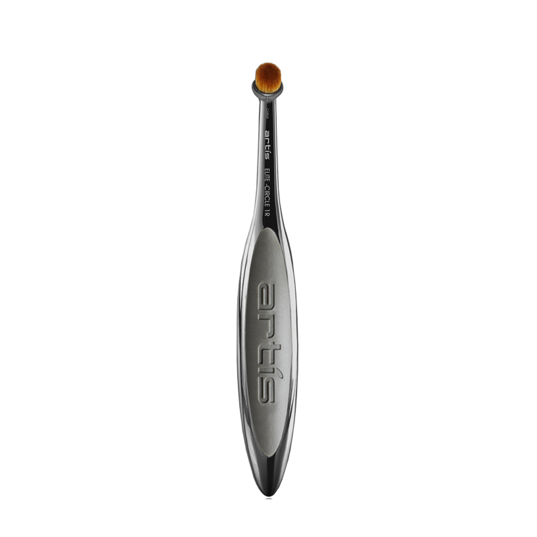 The design of the Artis Elite Collection Circle 1R has a solid metal handle and is produced using a proprietary premium metal alloy that has a luxurious density, increased durability, and feels even smoother to the touch. The Circle 1R has the same handle as the Circle 1 but the fibre bundle tips form a rounded dome. This rounded [the R in the name] edge allows for a soft, natural-looking edge to the application, which is preferred when spot concealing or blending eyeshadow all-over the lid or in the crease.