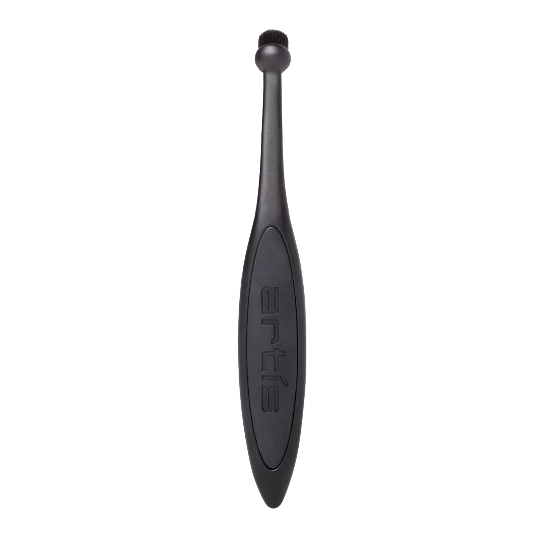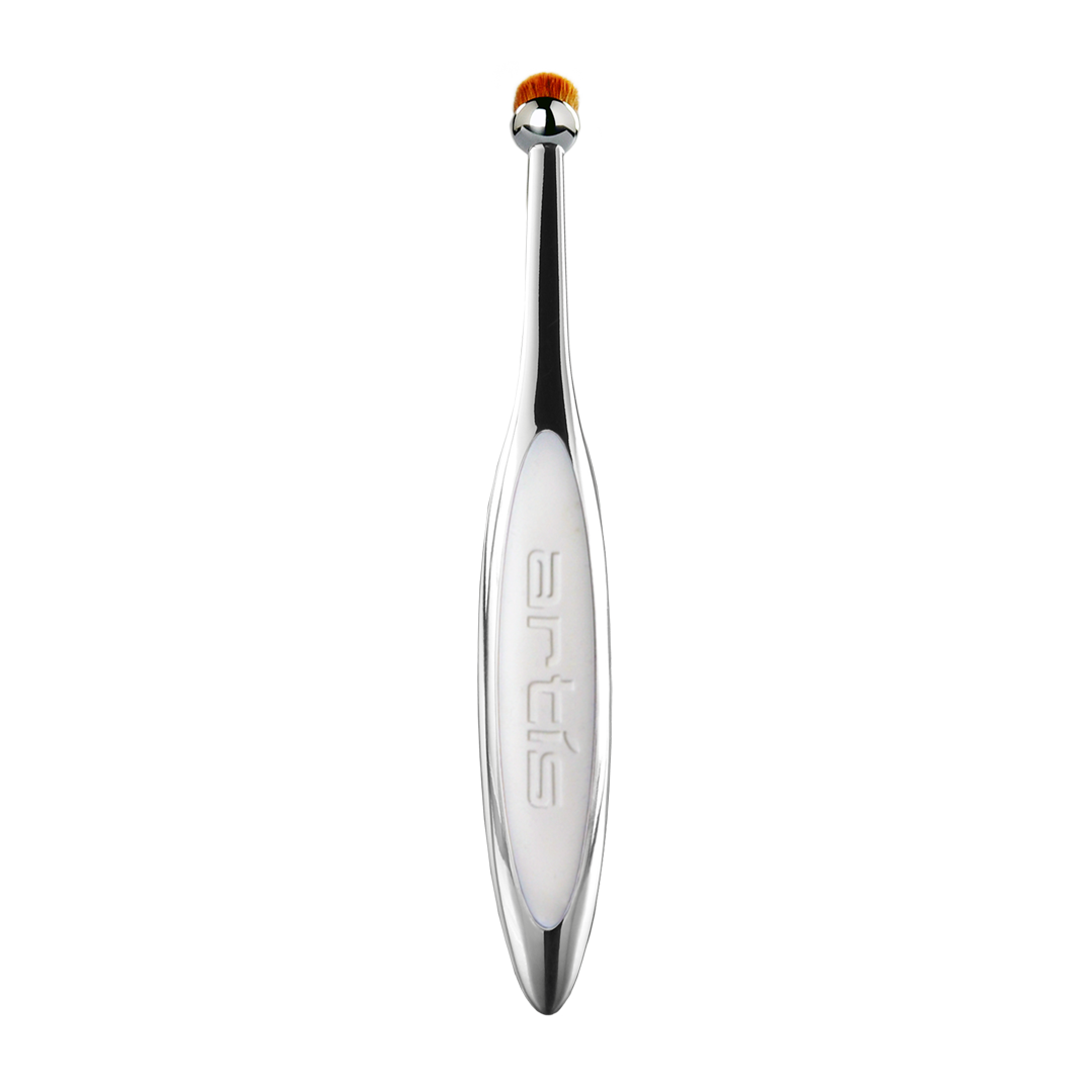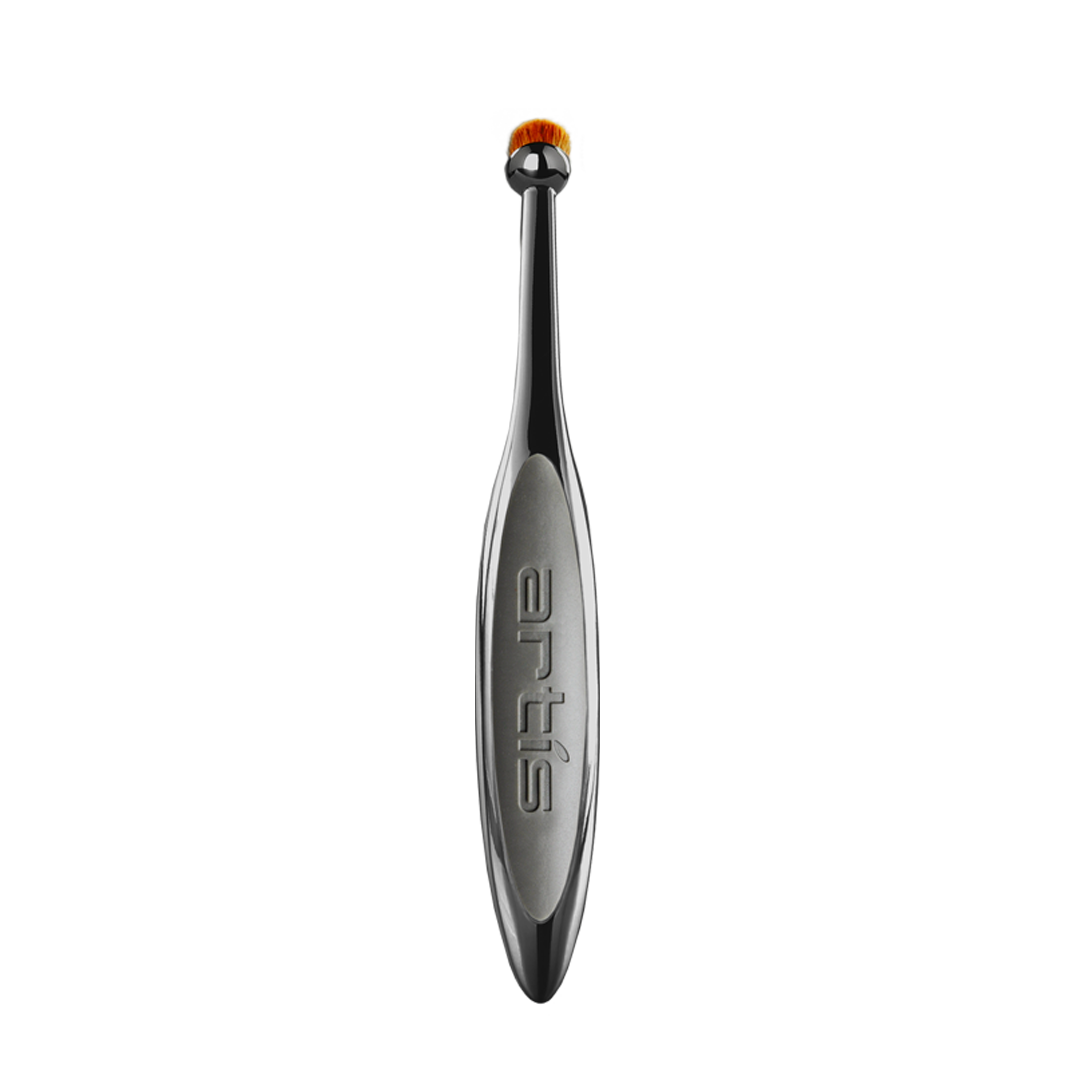 The design of the Artis Elite Collection Circle 1R has a solid metal handle and is produced using a proprietary premium metal alloy that has a luxurious density, increased durability, and feels even smoother to the touch. The Circle 1R has the same handle as the Circle 1 but the fibre bundle tips form a rounded dome. This rounded [the R in the name] edge allows for a soft, natural-looking edge to the application, which is preferred when spot concealing or blending eyeshadow all-over the lid or in the crease.