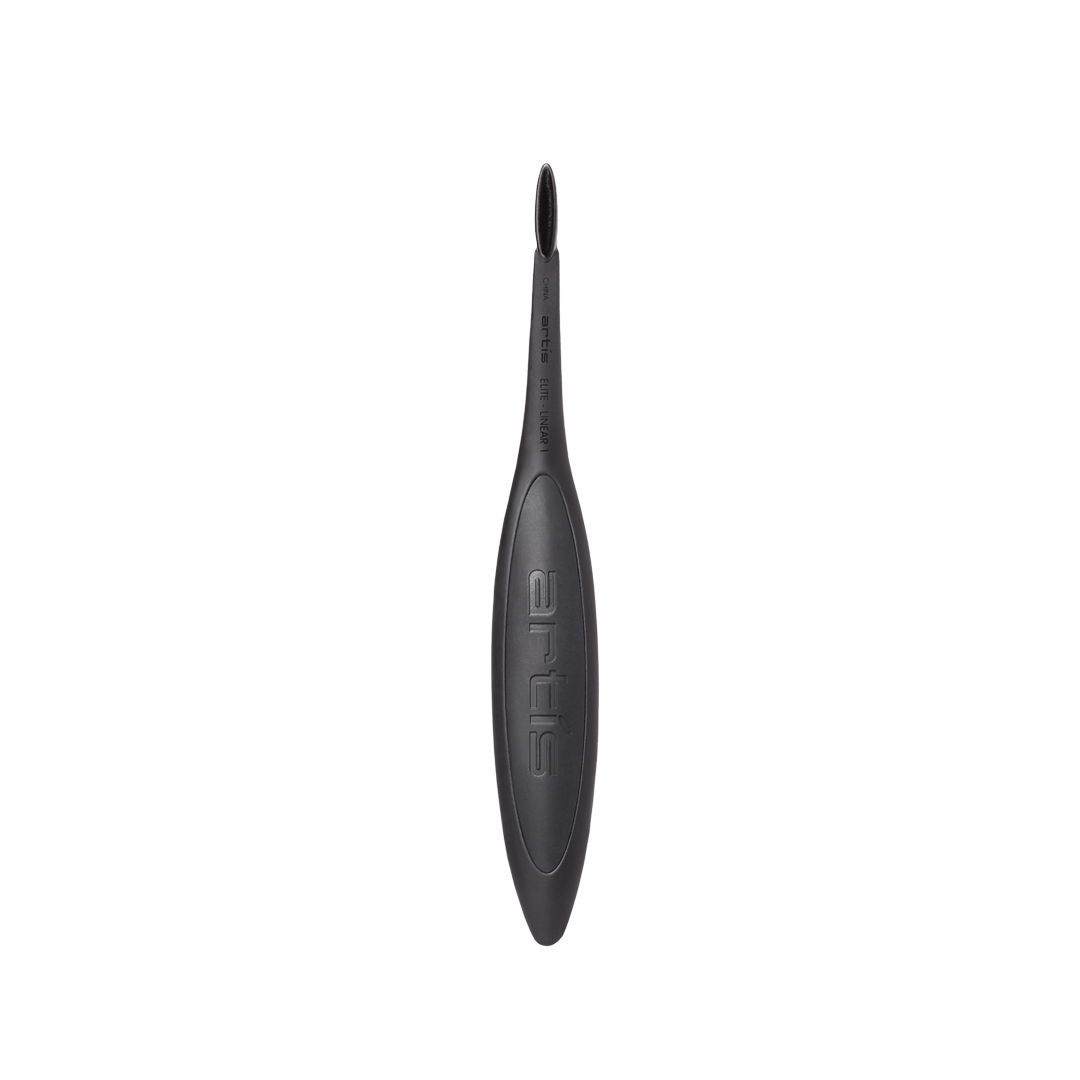The design of the Artis Elite Collection Linear 1 has a solid metal handle and is produced using a proprietary premium metal alloy that has a luxurious density, increased durability, and feels even smoother to the touch. Offering the thinnest width fibre bundle of the Linear brushes, the Linear 1 creates a line shape about 2mm wide, which makes it excellent for creating tight lines around the eye and filling in the eyebrows.