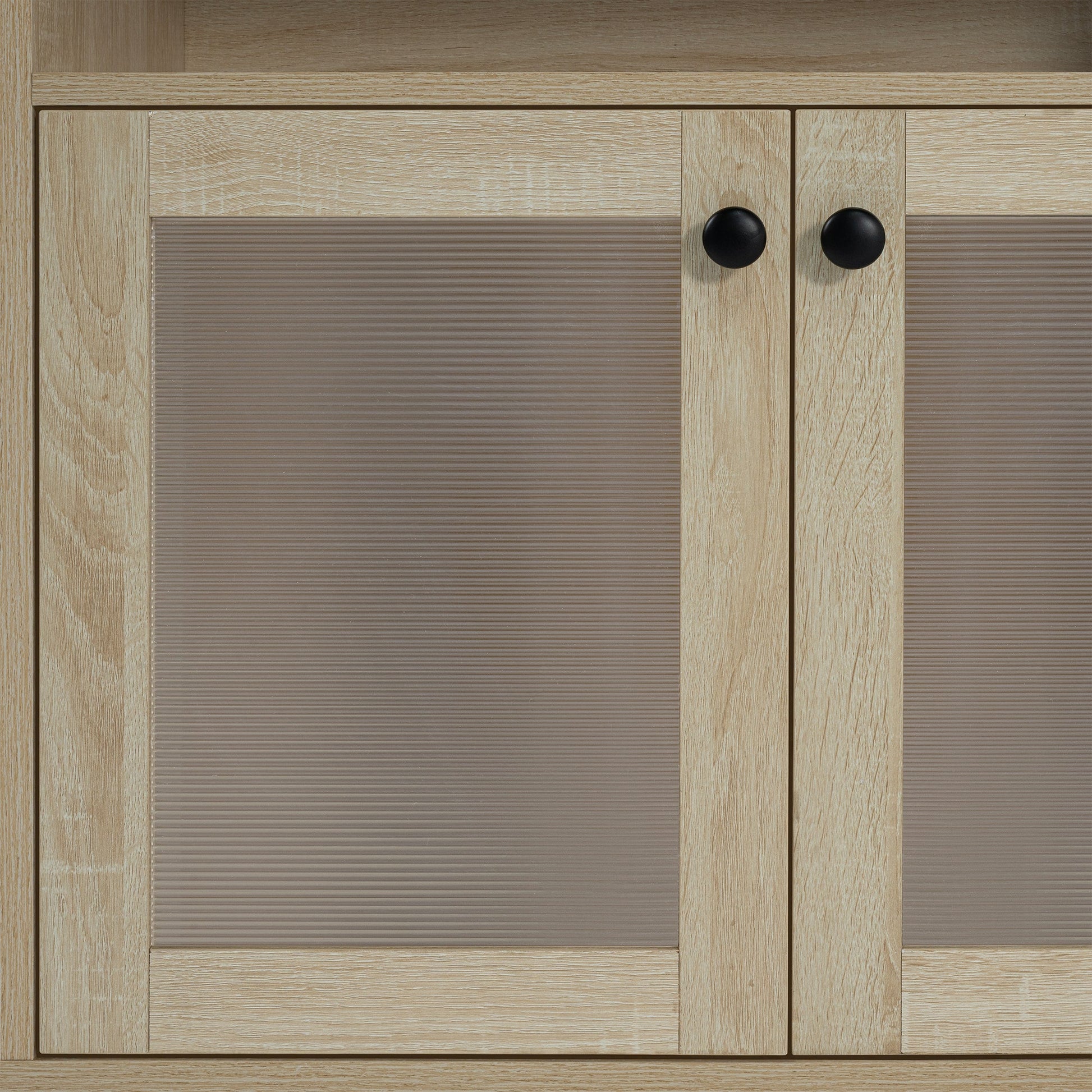 【Ample Storage Space】 :Features two open shelves and two cabinets with doors, offering ample space to organize media devices, books, and decor. Round black knobs add a refined touch.