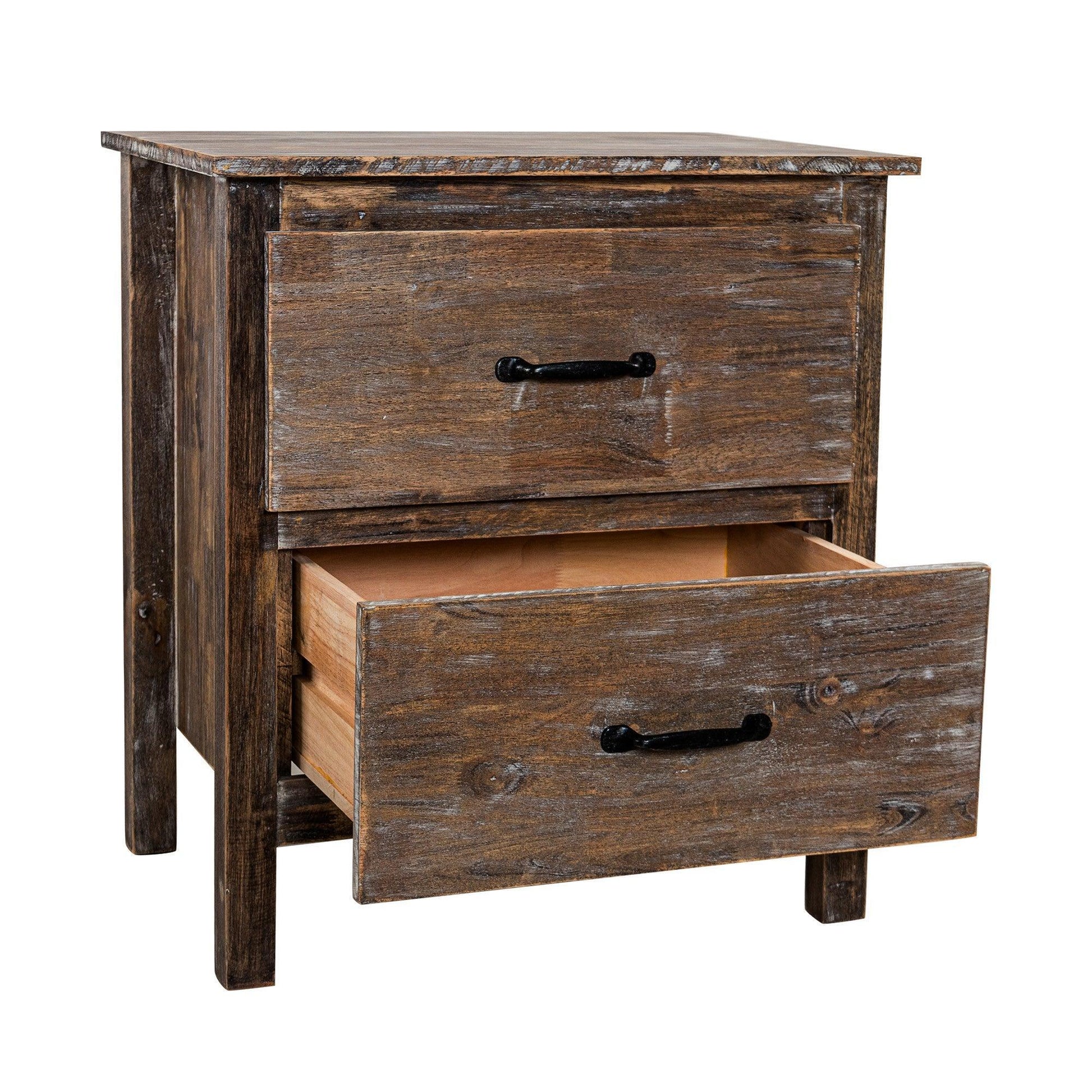 This two-drawer nightstand is perfect for bedrooms. It's made from solid wood and features metal drawer hardware. Plenty of space in the drawers for jewelry, miscellaneous items, books and equipment within easy reach by the bed.