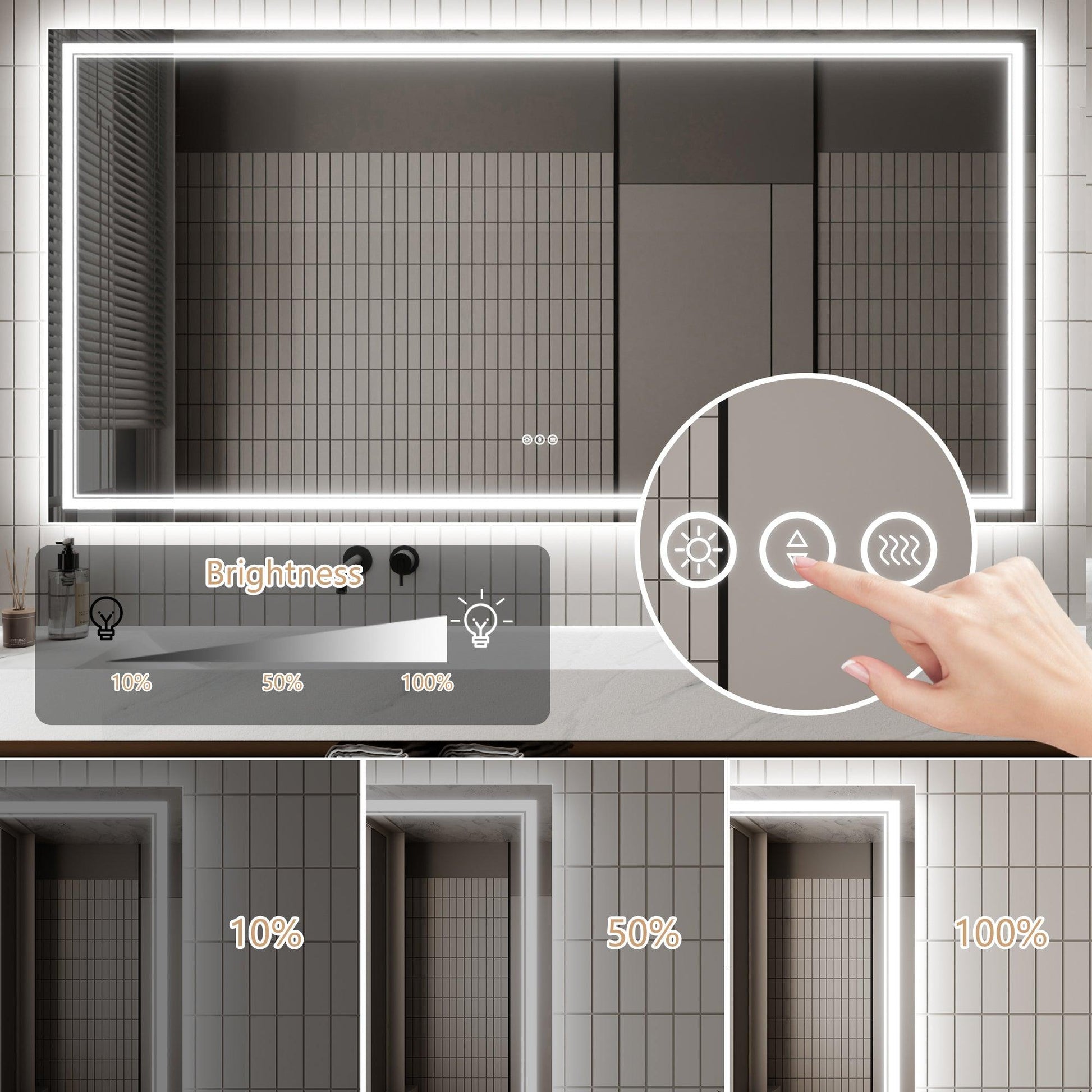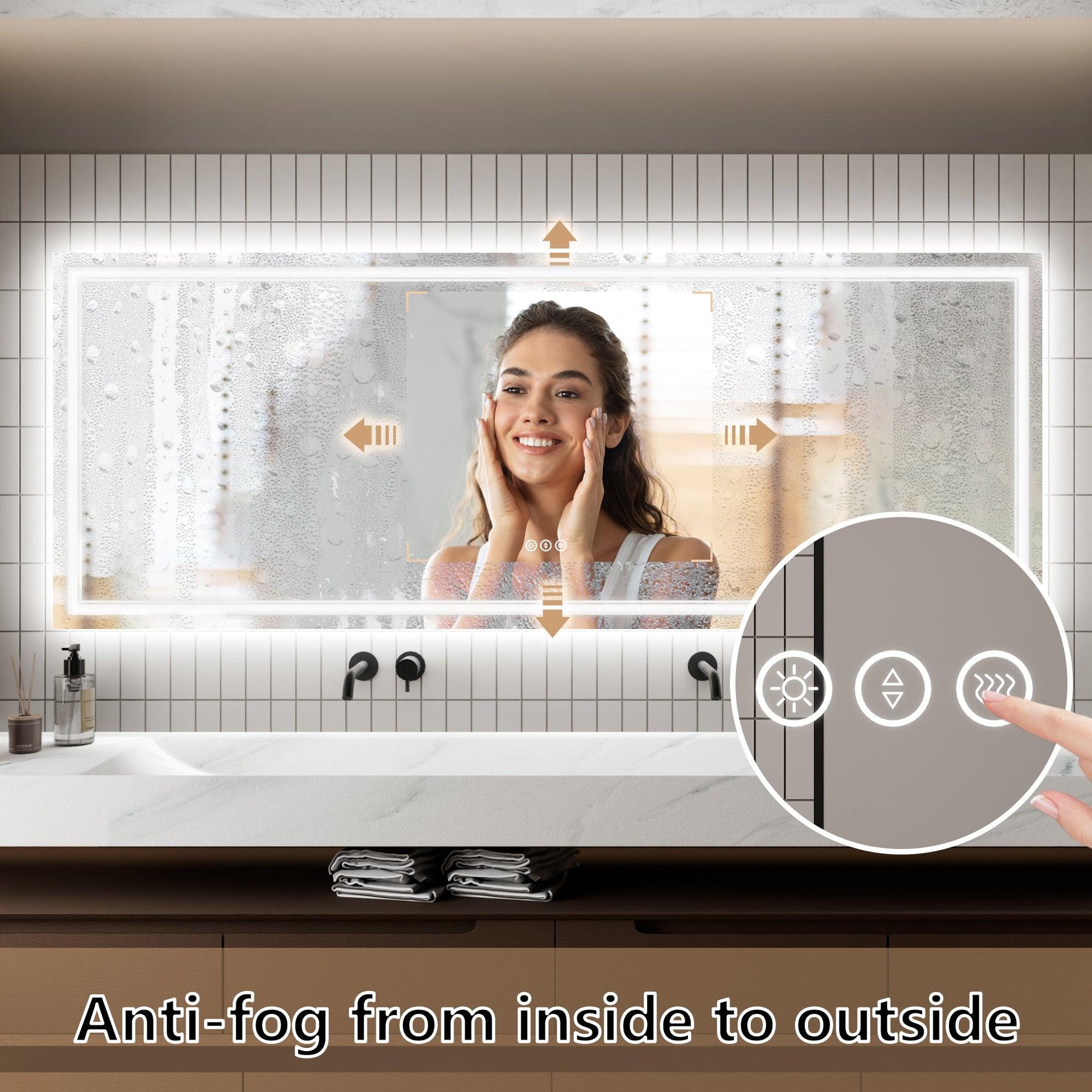 【Anti Fog】 : Defogger is separately controlled by a touch switch. Turn it on/off according to your needs. Low power consumption, safe, and energy saving.