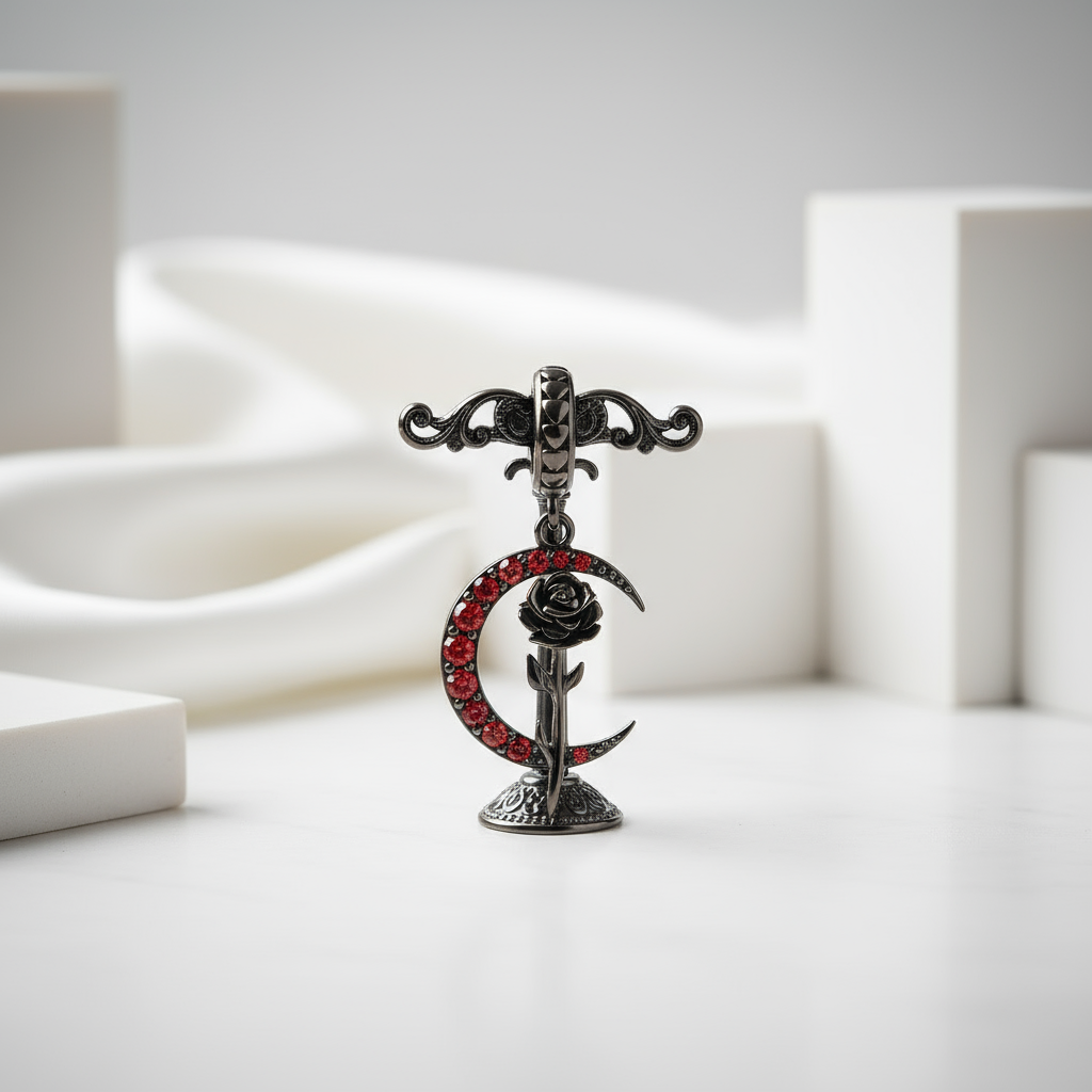 Gothic Black Moon Rose & Butterfly Charm Series