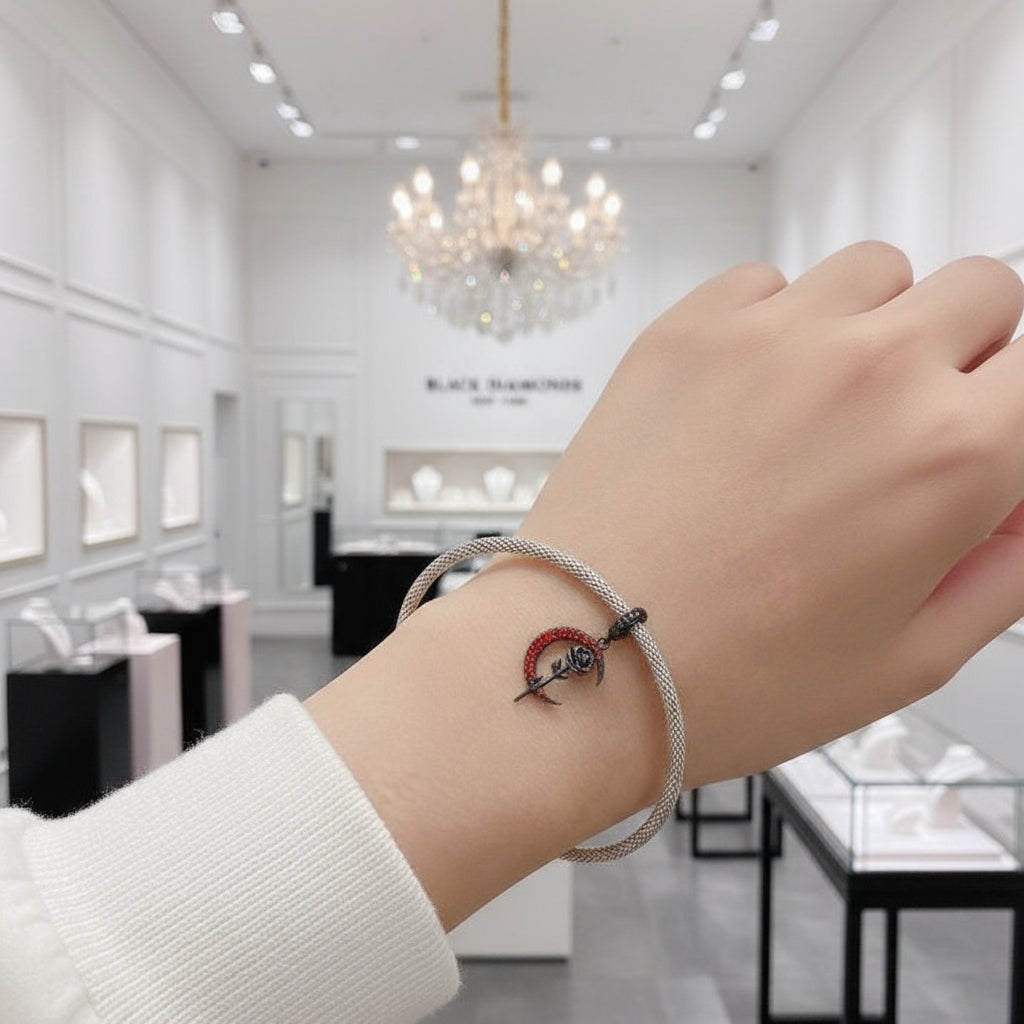 Indulge in the Gothic Black Moon Flower & Butterfly Charm Series from Black Diamonds New York! Find your wild side with this adventurous and stylish collection, crafted from 92.5% pure silver and 7.5% high-quality and hypoallergenic metals. All adorned with a diamond, a black moon and rose, butterflies, a cross dream catcher, and a wild flower, this series is perfect for the daring fashionista! Enjoy the gothic and punk styles, with an affordable price tag!