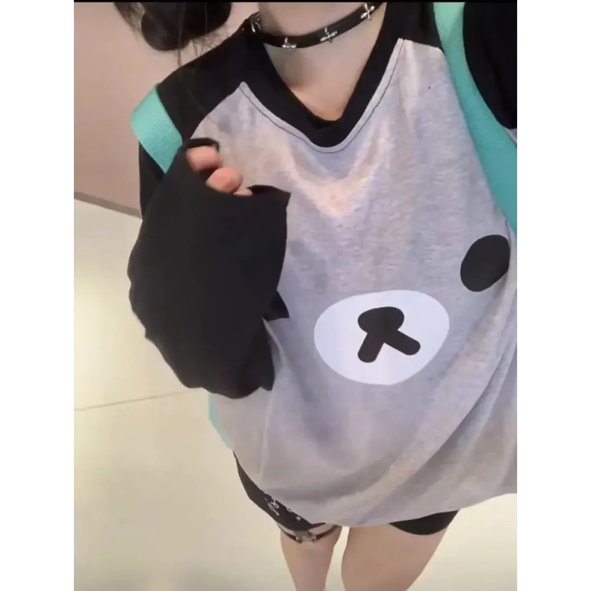 Gray Kawaii Bear Oversized T-Shirt – Harajuku Long Sleeve Top Y2K Style