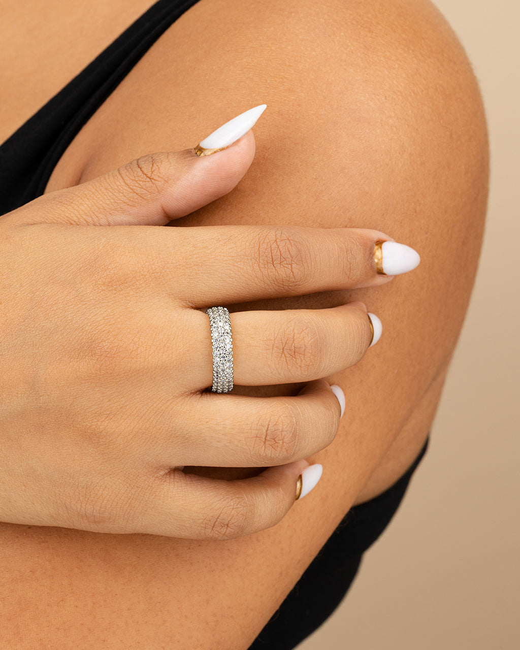 Enhance your style with the Jolene CZ Rainbow Eternity Ring. This stunning piece features a full circle of sparkling CZ stones, creating a dazzling and luxurious look. The cz studded design adds an extra touch of sophistication, making this ring perfect for any occasion. Elevate your style with this exclusive and elegant eternity ring.