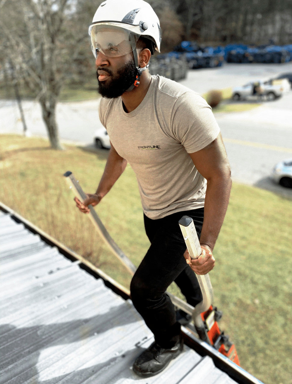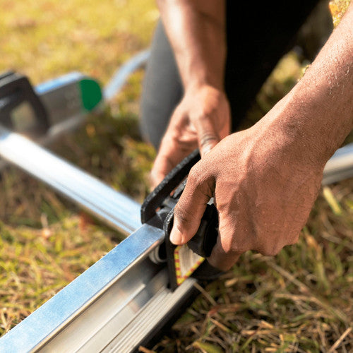 Frontline's Safetys Step-N-Safe Extension Ladder Walk-Thru is designed to fit most ladder profiles in the market. Fully compatible with ladders from Type II to Special Duty Type IAA. The Step-N-Safe utilizes a dual clamping safety lock system which improves stability when accessing the handrails of the Walk-Thru. The height of the Step-N-Safe allows for easier compliance with the proper ladder elevation above the walking surface, which is 36. The Step-N-Safe also has a wide base with non-skid rubber padding that increases the contact area on the work surface while transitioning to an elevated walking surface. The non-skid rubber padding also protects against the damaging to gutters, etc. The Frontline Step-N-Safe is compliant with OSHA 1910 and 1926.