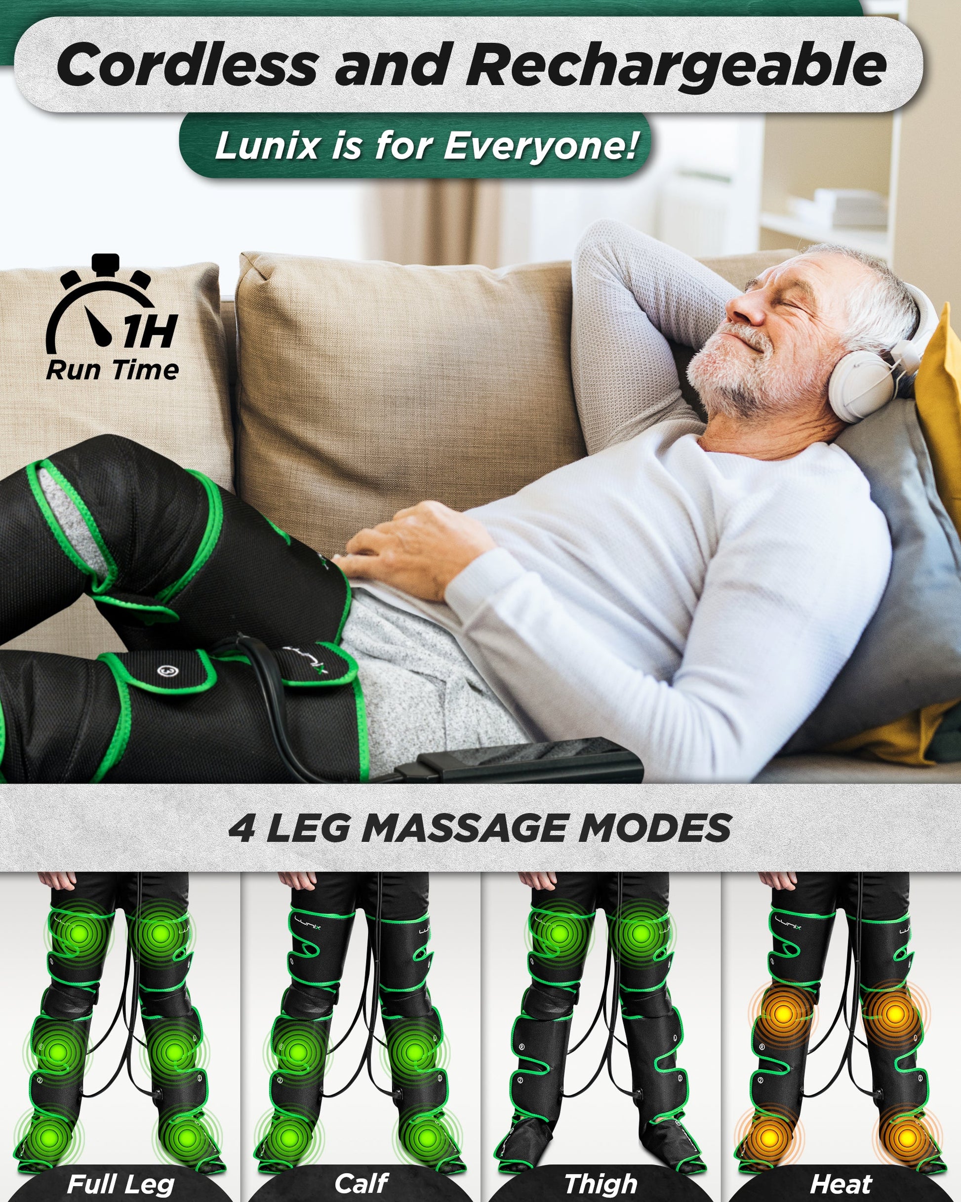 ๐๐ ๐ ๐๐๐๐๐ ๐๐๐ - If you are looking for a great gift that has anย innovativeย life-improving factor, then you would love our unique sleek design leg recovery system. The Cordless and Rechargeable Heated Leg Massager with the LCD touchscreen controller allows you to use the leg massager wherever you want, wherever you want. Charge itย once and you can use itย for hours without worrying about cords or outlets.