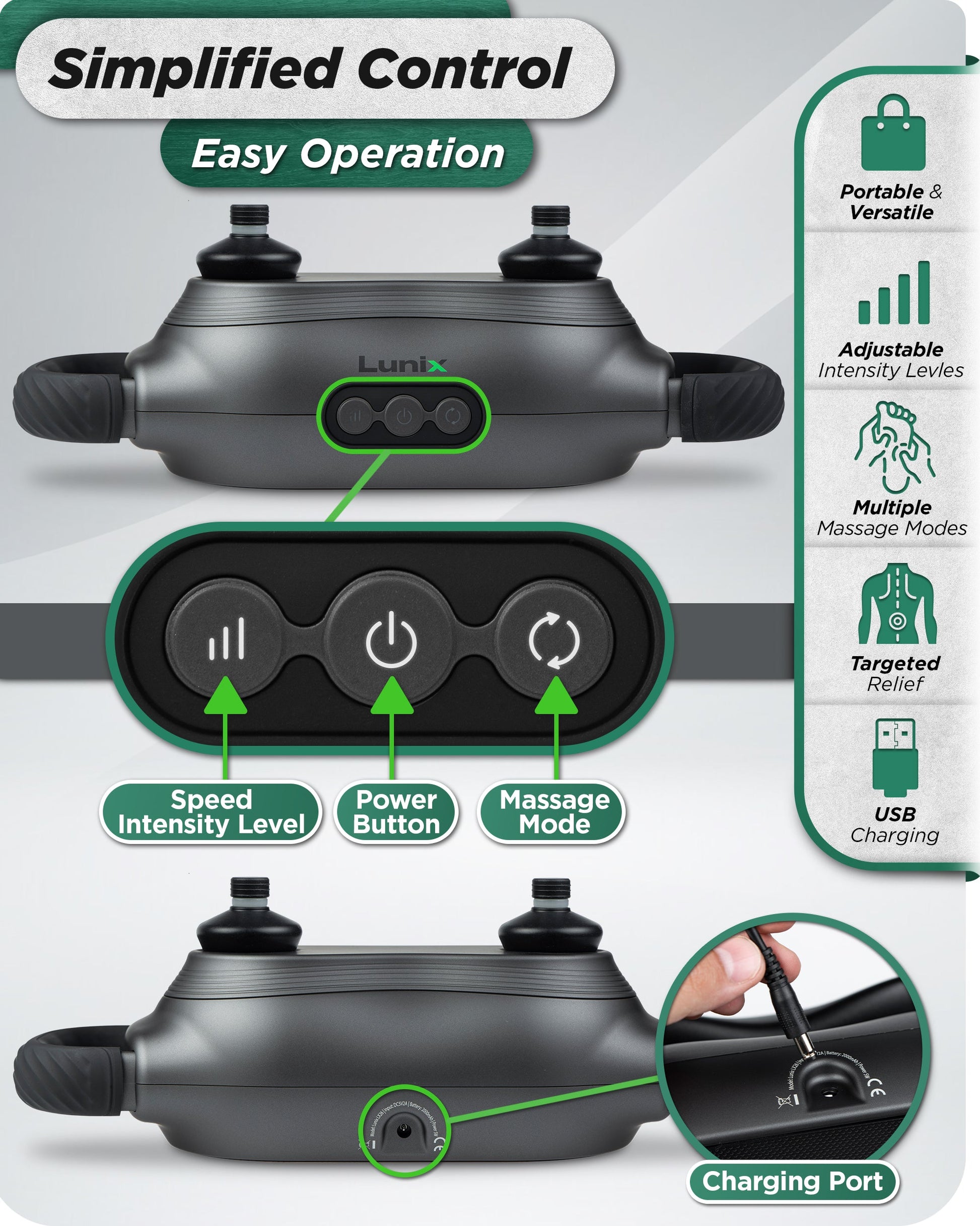 - Intuitive Controls & Customization: Easily tailor your massage experience with three massage modes and multiple intensity levels, all adjustable via user-friendly controls. The massager starts in Massage Mode 1 with a default intensity level of 2, ensuring a seamless start to your relaxation journey.