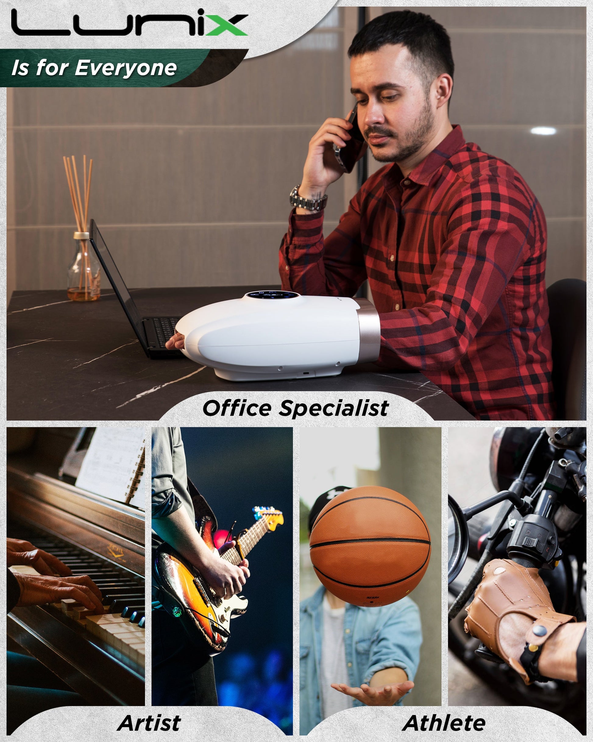 ๐๐๐๐๐ ๐๐๐๐๐ ๐๐๐๐ ๐๐๐๐๐๐๐๐๐ hurt your sore fingers due to strong pressure or just break after a few weeks, the new Lunix LX7 pressure point therapy massager provides an intense massage to your preferred hand area, 100% adjustable to your needs. LX7 hand massager offers 4 levels of massage & intensity, combines compression, heat (it provides a gentle warmth, around 104ยฐF - enough to relax & enhance the benefits of the massage), and vibration to offer you the closest feeling to a real hand massage