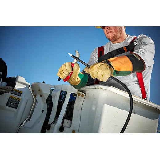The Milwaukee® Fixed Blade Hawkbill Knife is ideal for stripping wire and cable. The stainless steel blade is optimized to stay sharper longer and a full metal tang provides durability for tough cuts. The oversized ergonomic handle is designed for comfortable use with gloves. A durable molded sheath provides easy carry and storage.