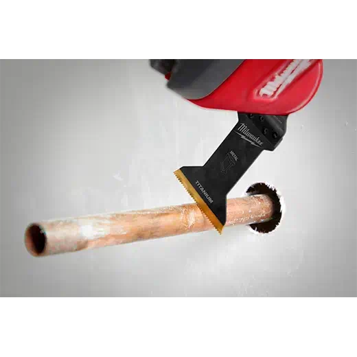 Our Universal Fit OPEN-LOK™ Titanium Enhanced Bi-Metal Blades are designed for Oscillating Multi-Tools. These multi-tool blades for metal are titanium enhanced and made from premium high-speed steel. These bi-metal blades have a slightly narrower cutting width than most standard bi-metal blades and a slightly longer blade body, designed for cutting soft metals, wood, nails, PVC, and drywall. They feature a combination of tooth form and material to offer you a better cutting performance in soft metals. The MILWAUKEE® bi-metal multi-tool blades for metal are designed and made in the USA with global materials.