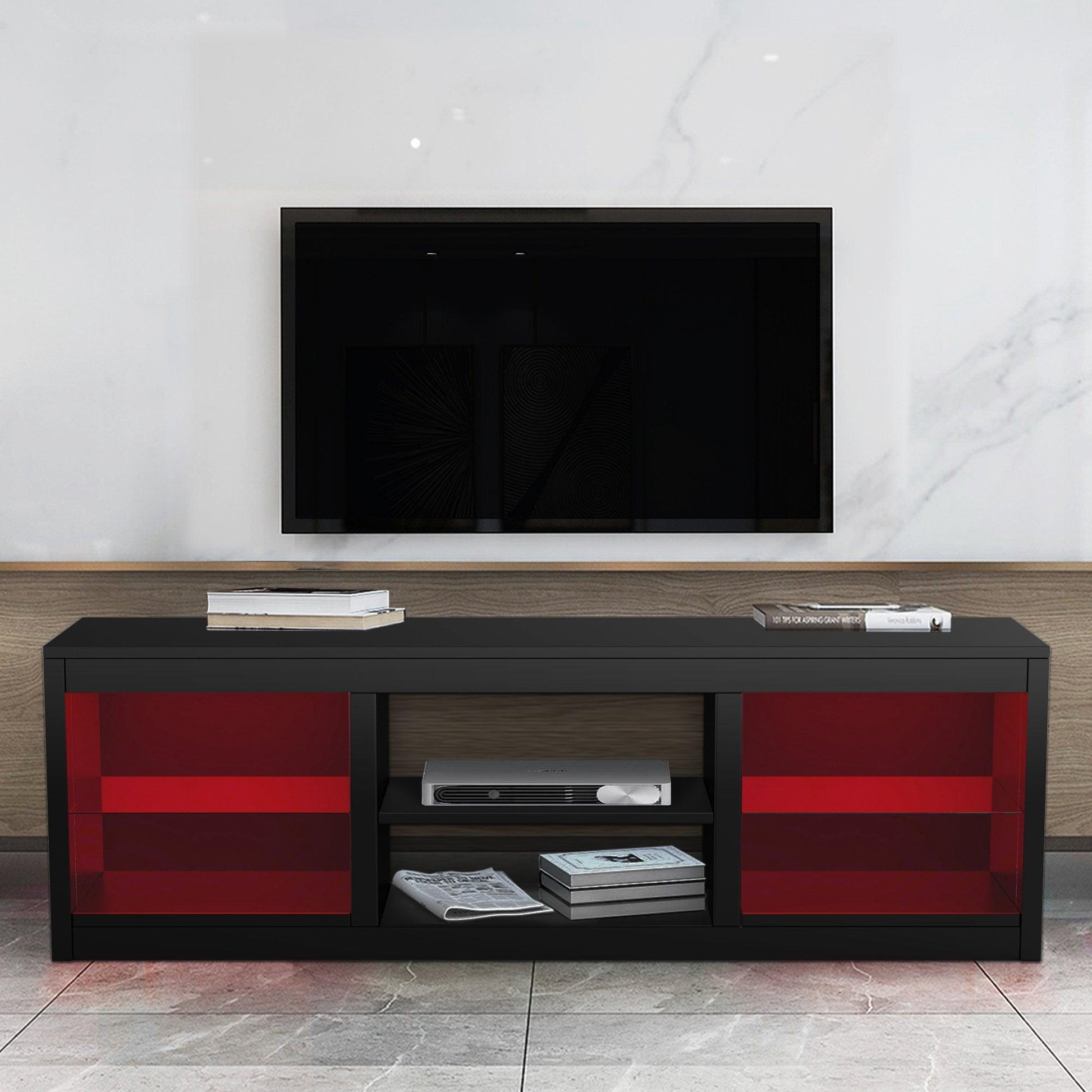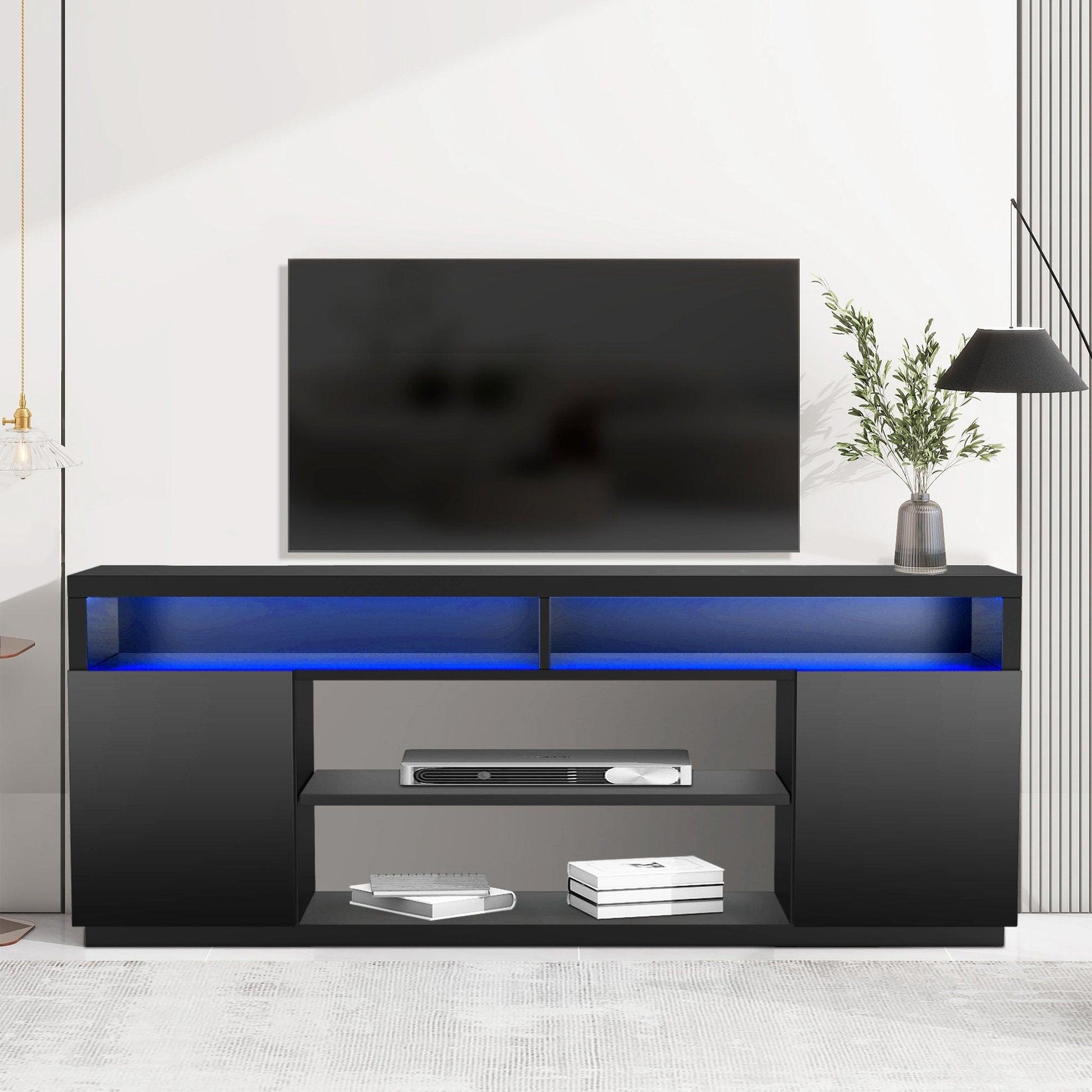 Modern 68 Inch TV Stand Media Console with LED Lights for Living Room