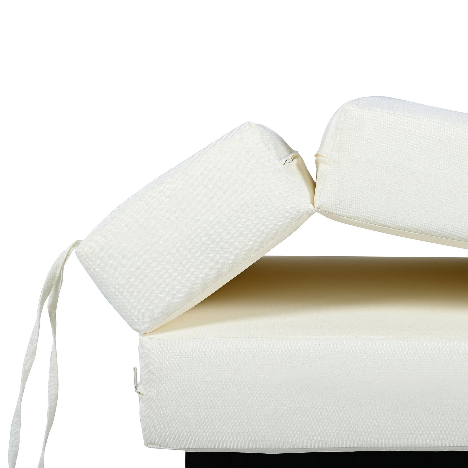 【All-Weather Cushion and Pillow】 :The one-piece soft cushions are designed for maximum comfort. The back and seat cushions of this daybed are connected together, and the included pillows are made of high-density foam for extreme comfort and are removable for individual use needs. The thick, highly resilient foam resists sagging. All stain-resistant, UV-resistant, and weather-resistant cushion covers are removable and washable for easy maintenance and durability.