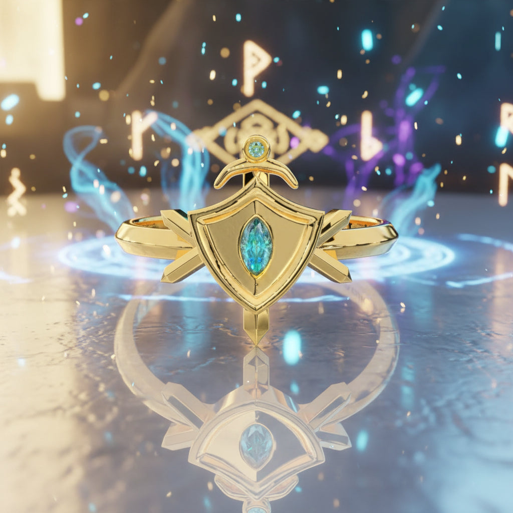 Paladin's Shield Ring (Unisex)- 14k Yellow Gold Video Game Inspired Rings