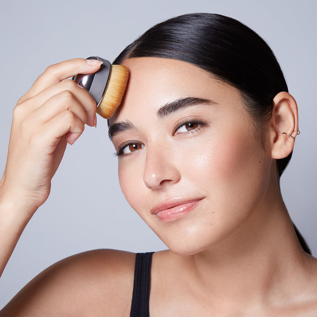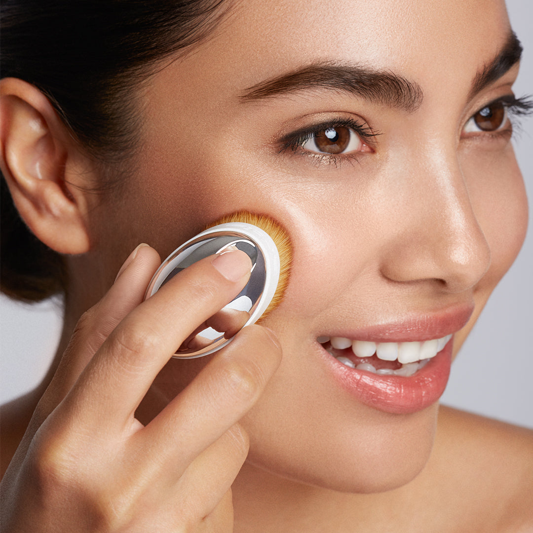 The Palm Brush Mini is designed to be used with liquid, cream or powder products such as: