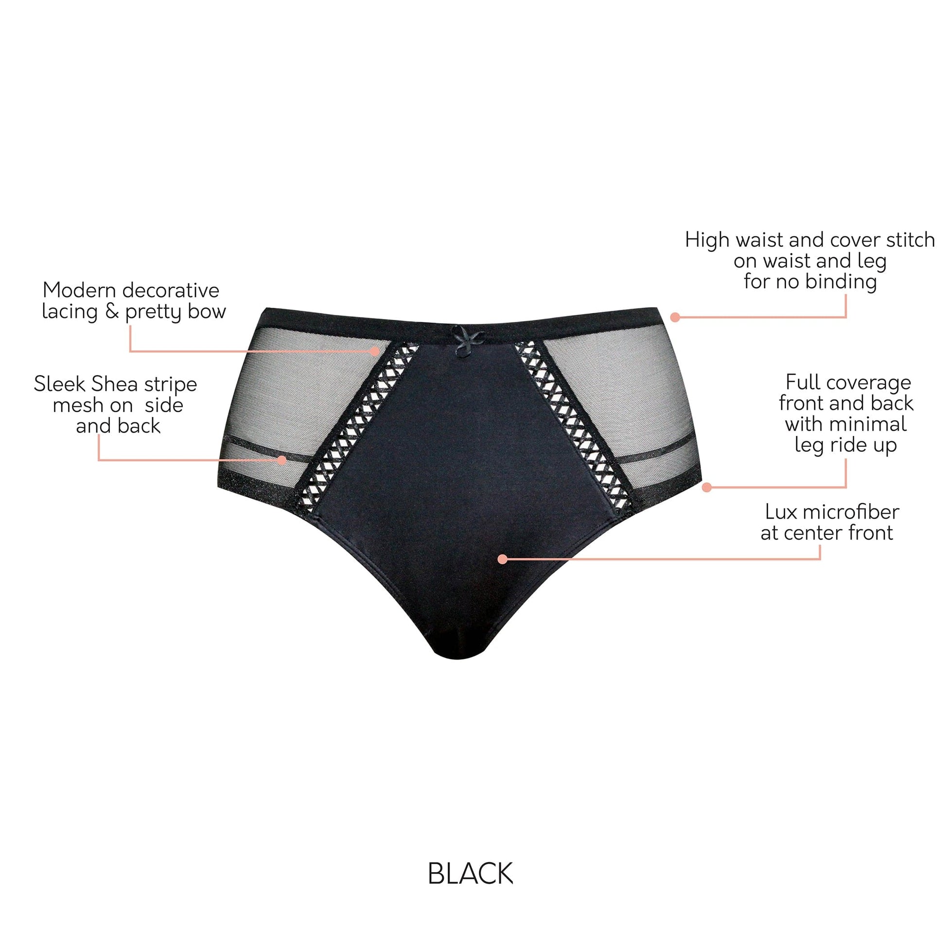 Pairing perfectly with our Shea Unlined Bra, Spacer Bra and Strapless Bra, this brief has sheer stripe mesh at the side and back that lays perfectly flat. This full coverage brief features modern decorative lacing at the front seam for a sexy feel.