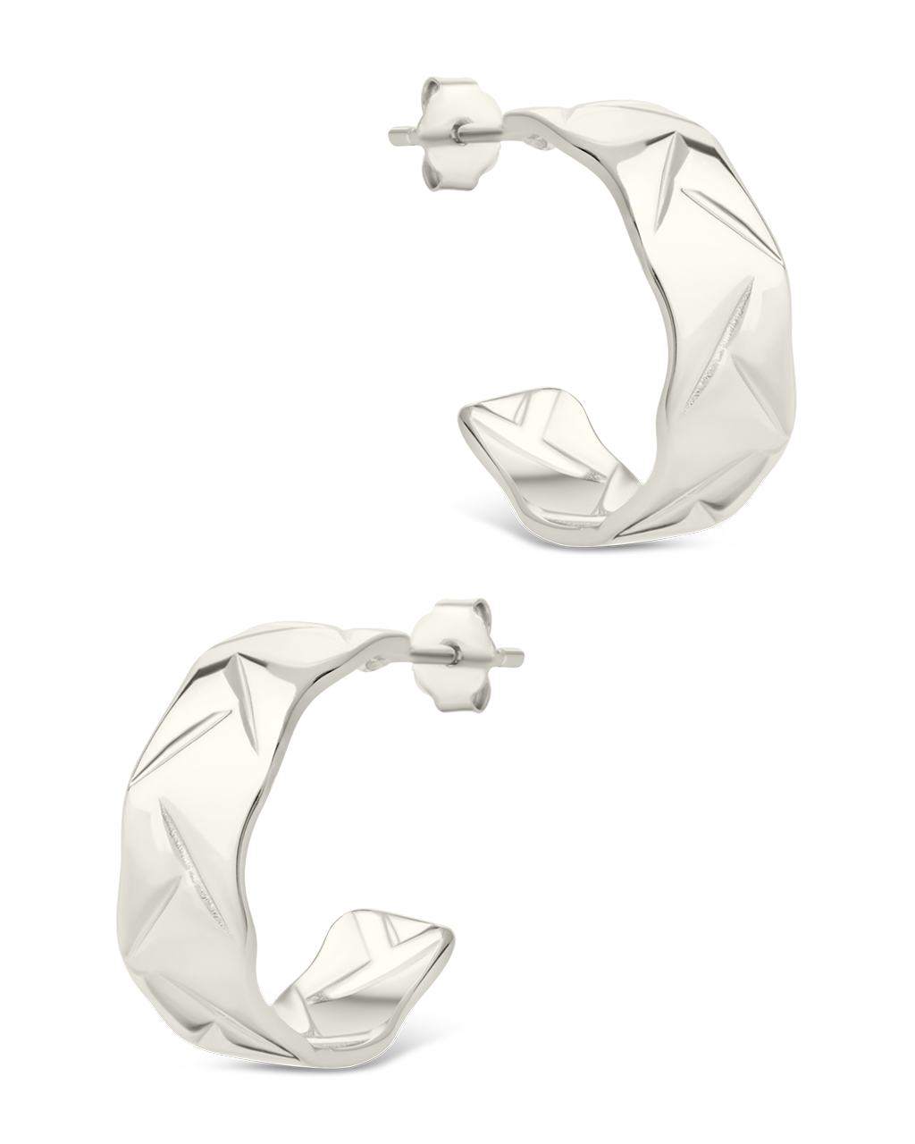 Angular and unapologetic. These textured hoops bring a sculptural edge to your stack—chunky enough to stand alone, striking enough to pair with sleek studs or a polished ear cuff.