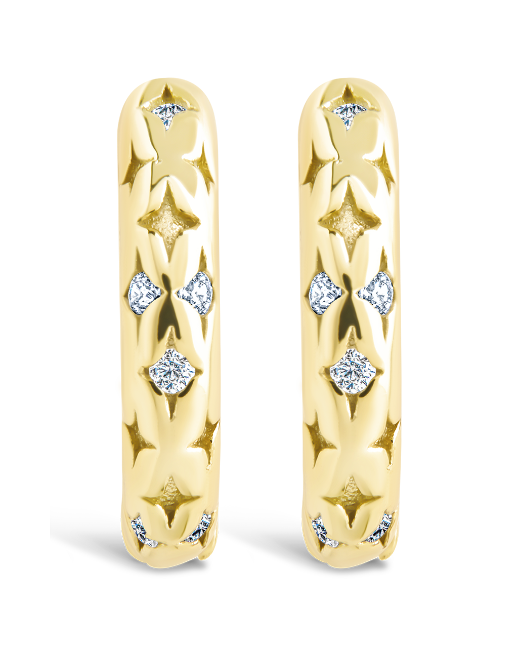 Star-studded and unapologetic. These celestial-inspired micro hoops feature diamond-cut CZs set in etched starbursts—made to shine solo or layered with your everyday stack.