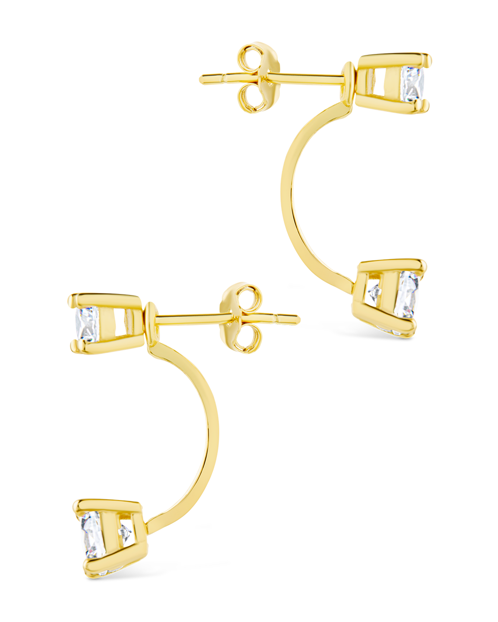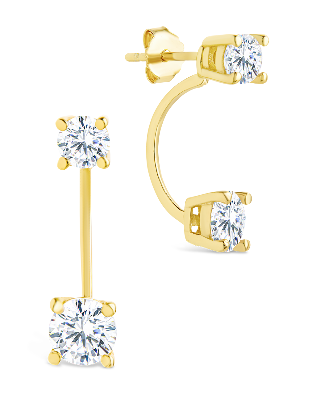 Features: 0.68" height jacket earring, 4mm CZ & 5mm CZ stones, Post back, Lead & Nickel free