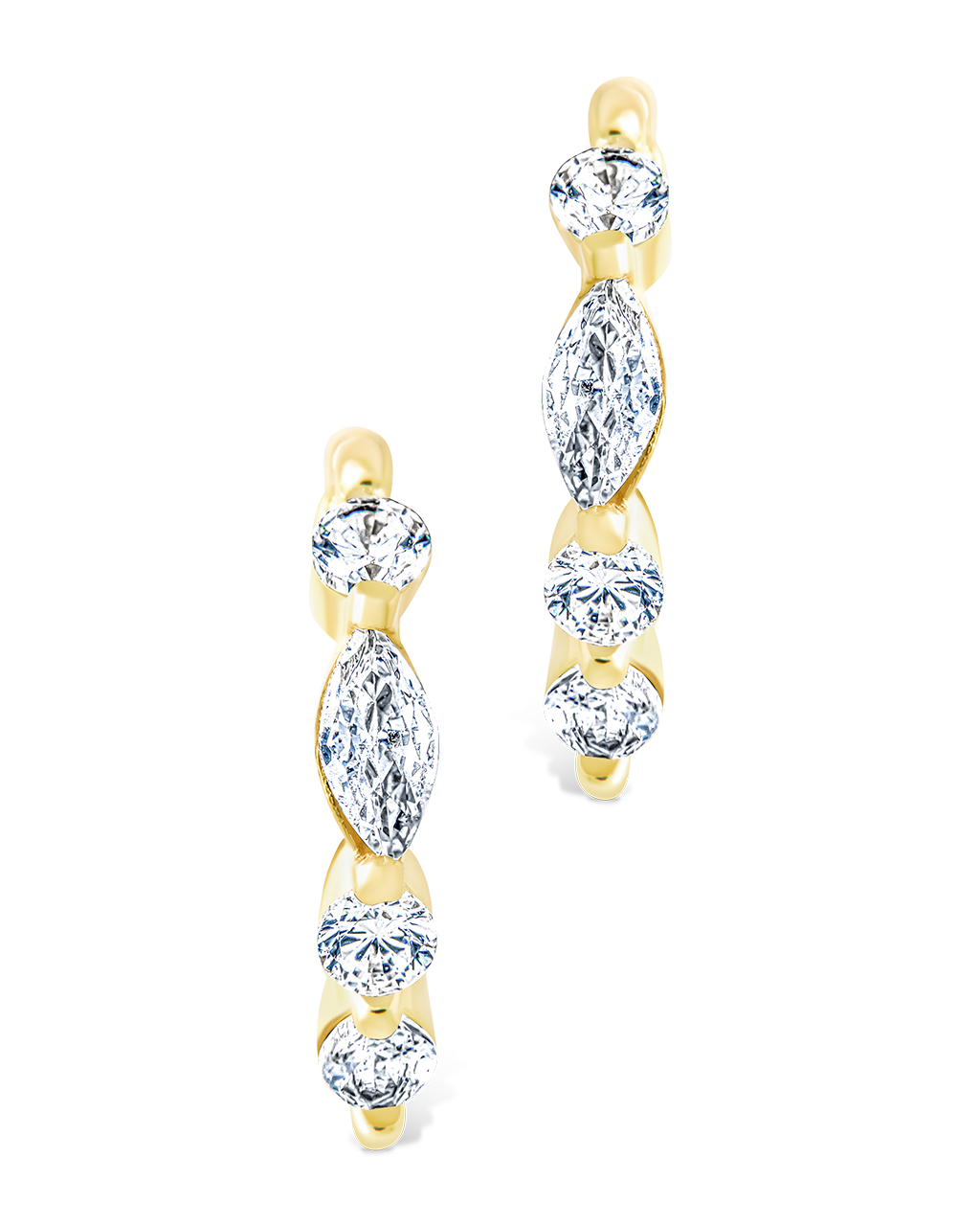 Delicate with a dash of drama. These micro hoops feature alternating marquise and round-cut CZs for a sculptural sparkle that’s made to mix or stand alone.